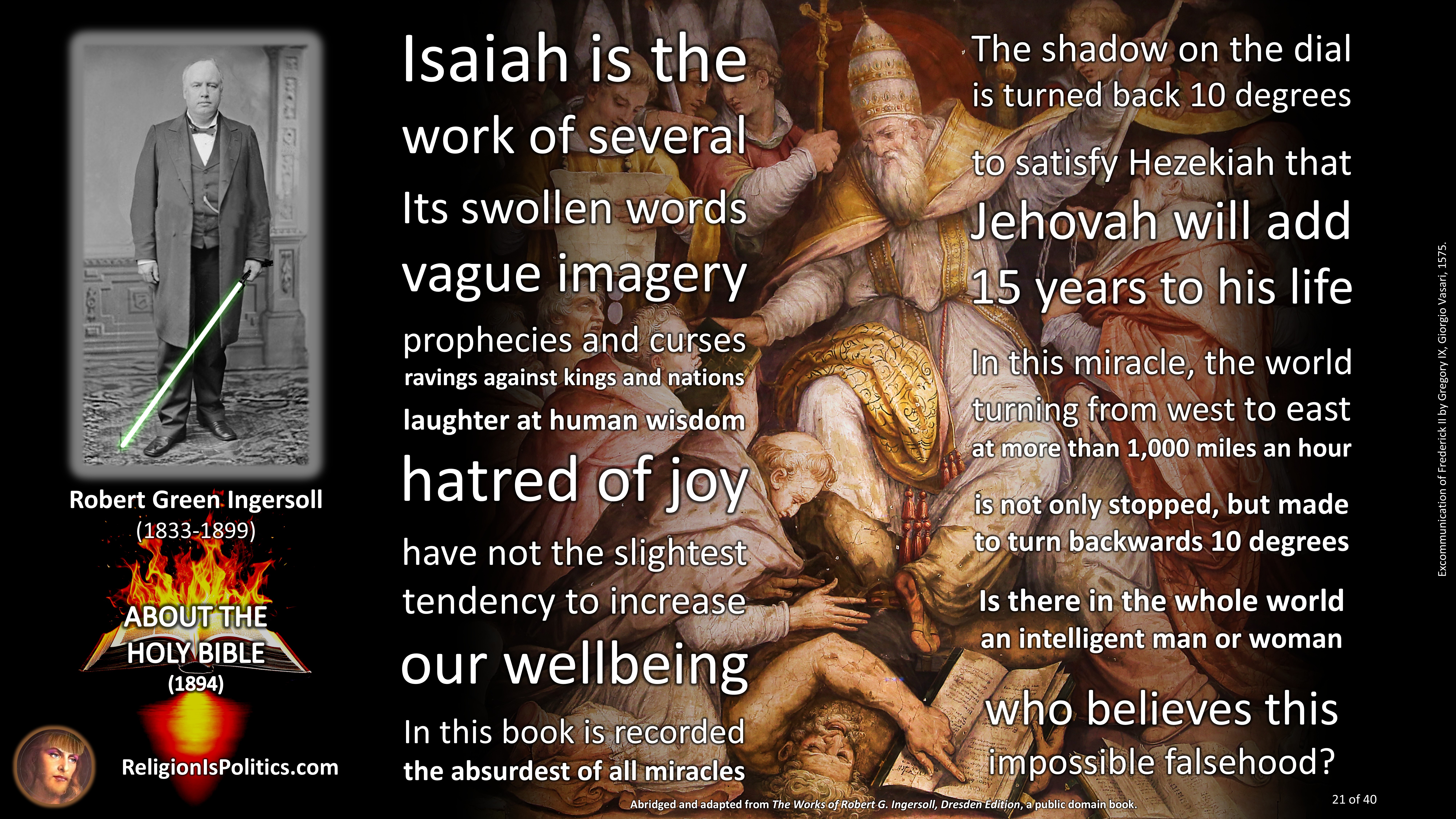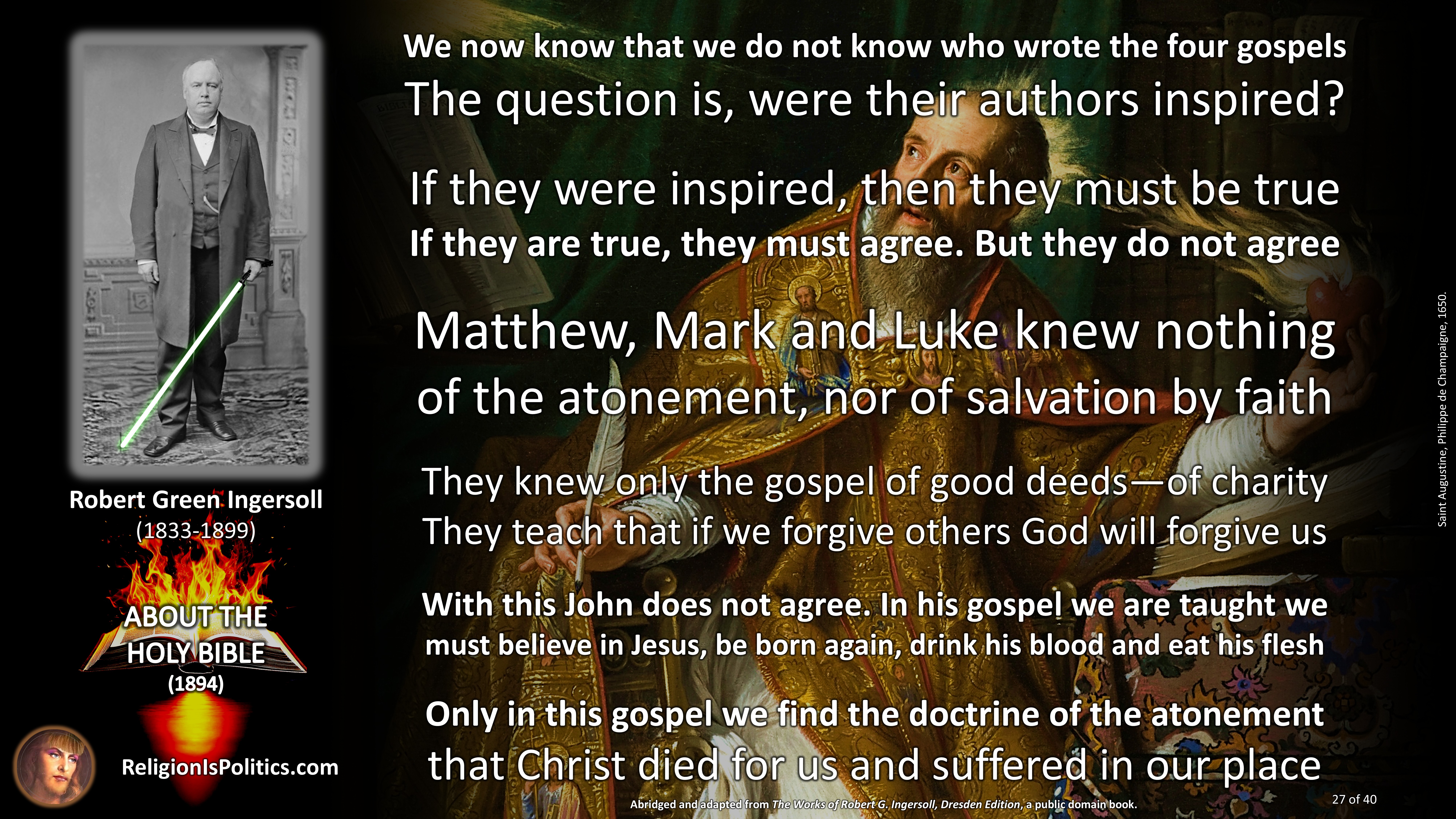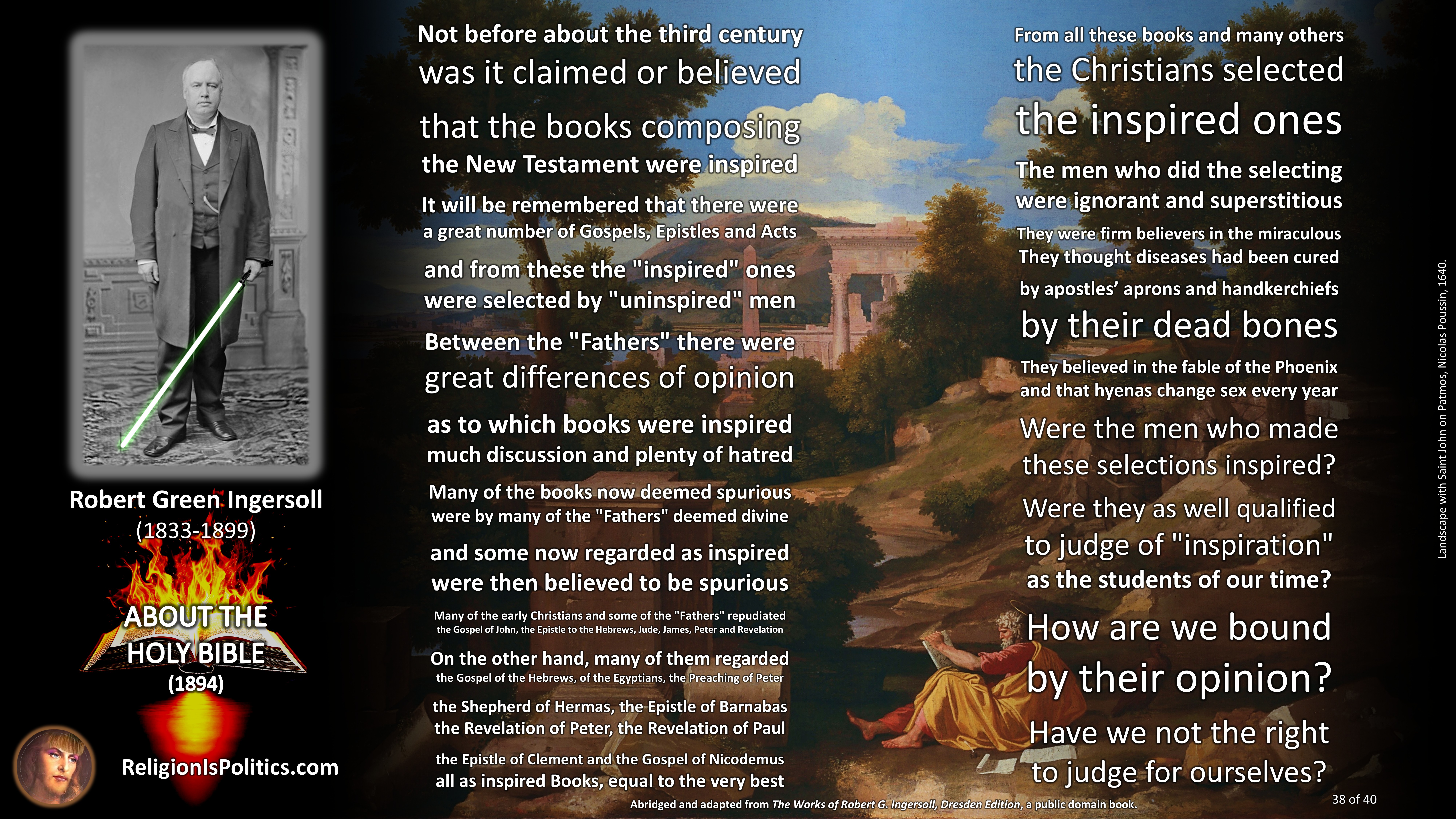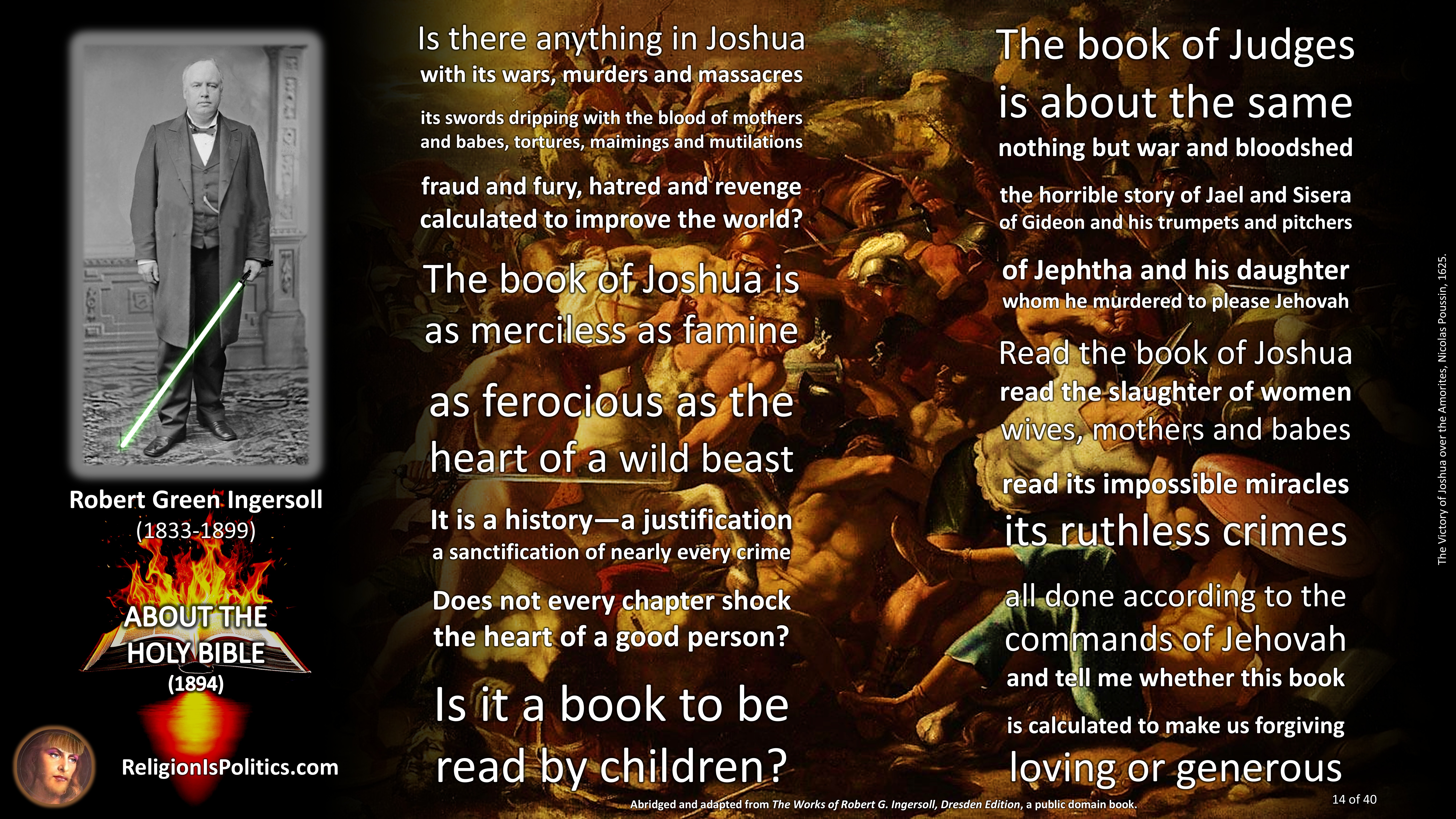 The reason why schoolchildren are told today that the Bible is the absolute truth is the same reason as back in Ingersoll’s day: because it isn’t.