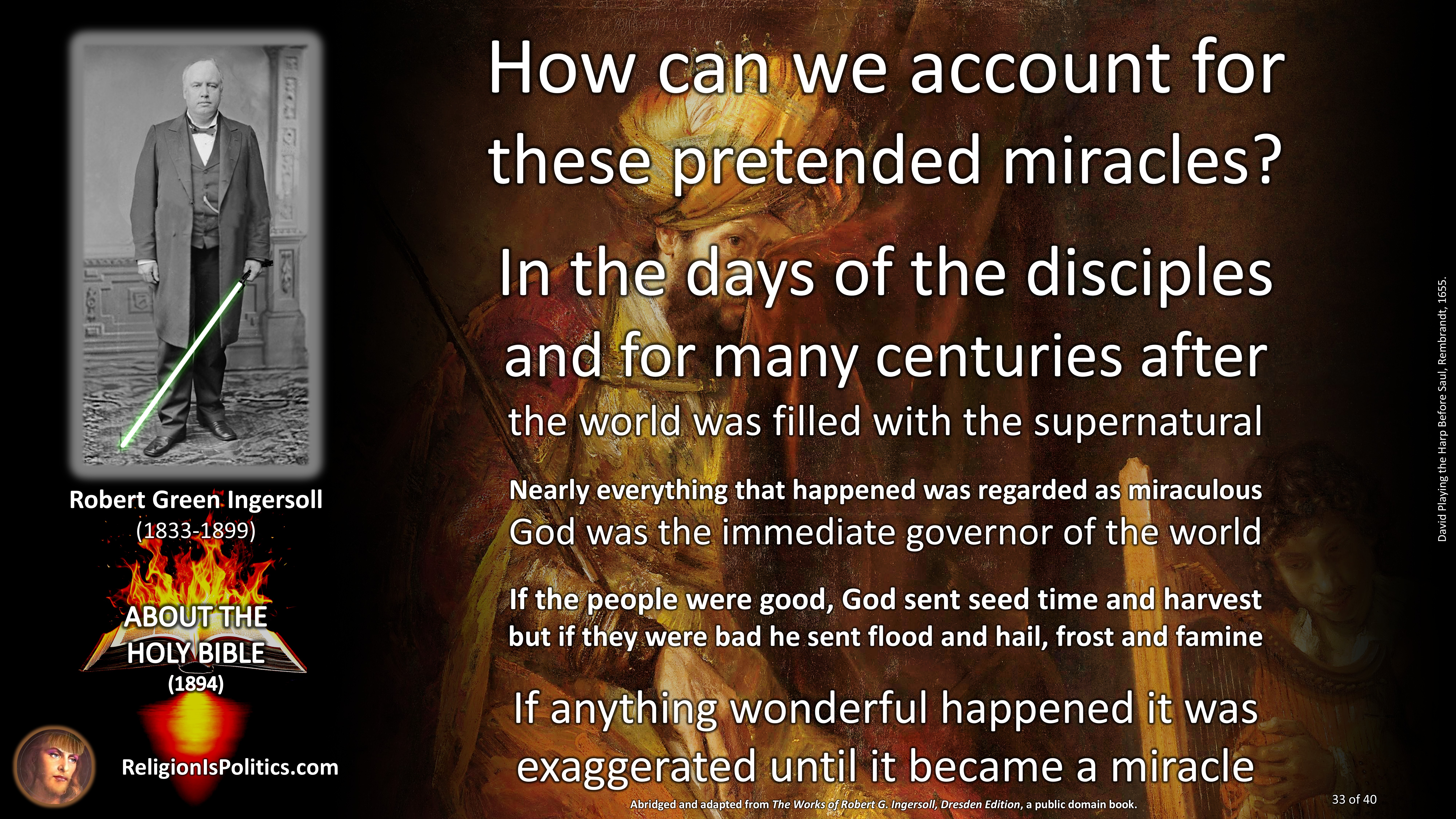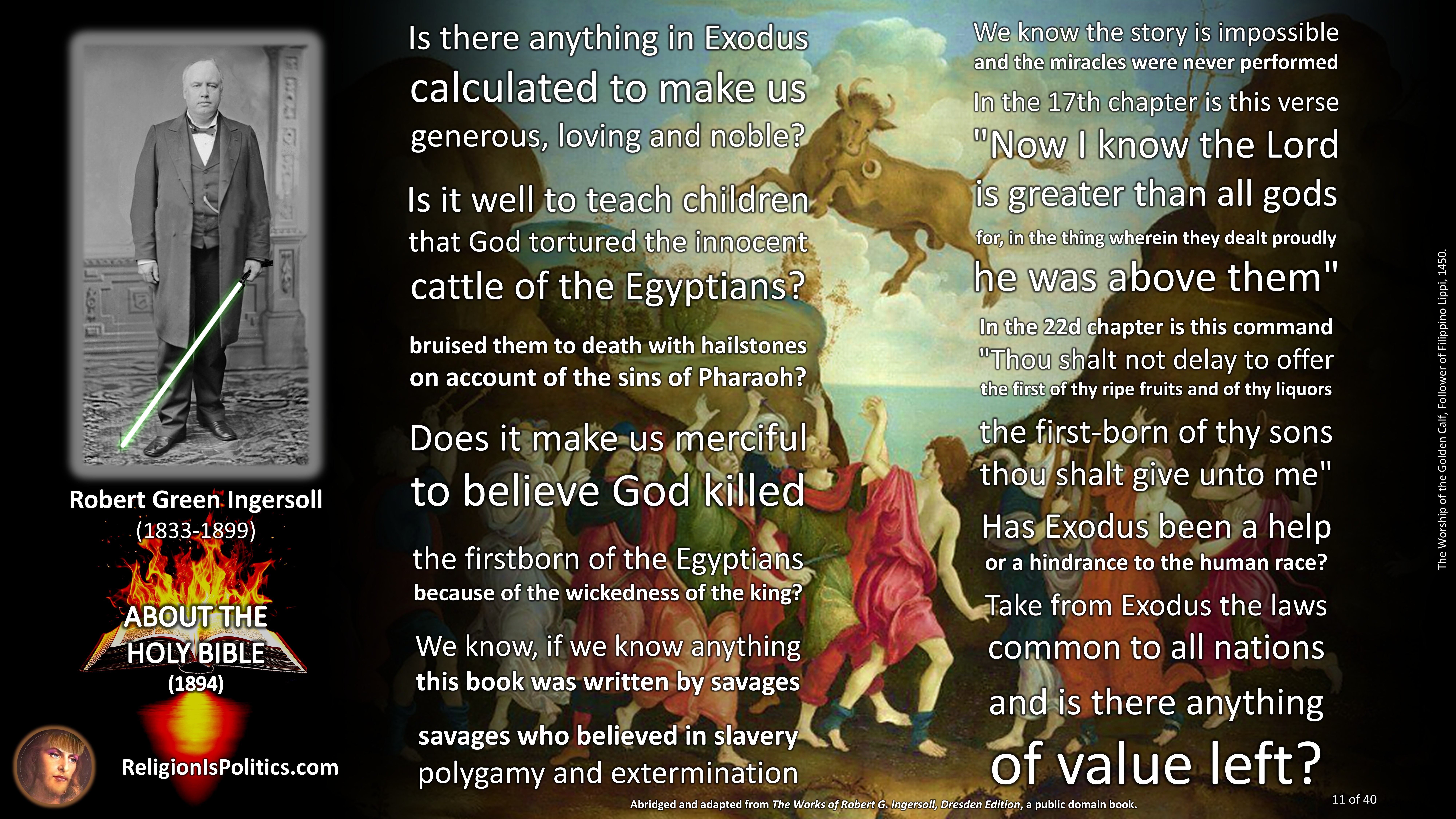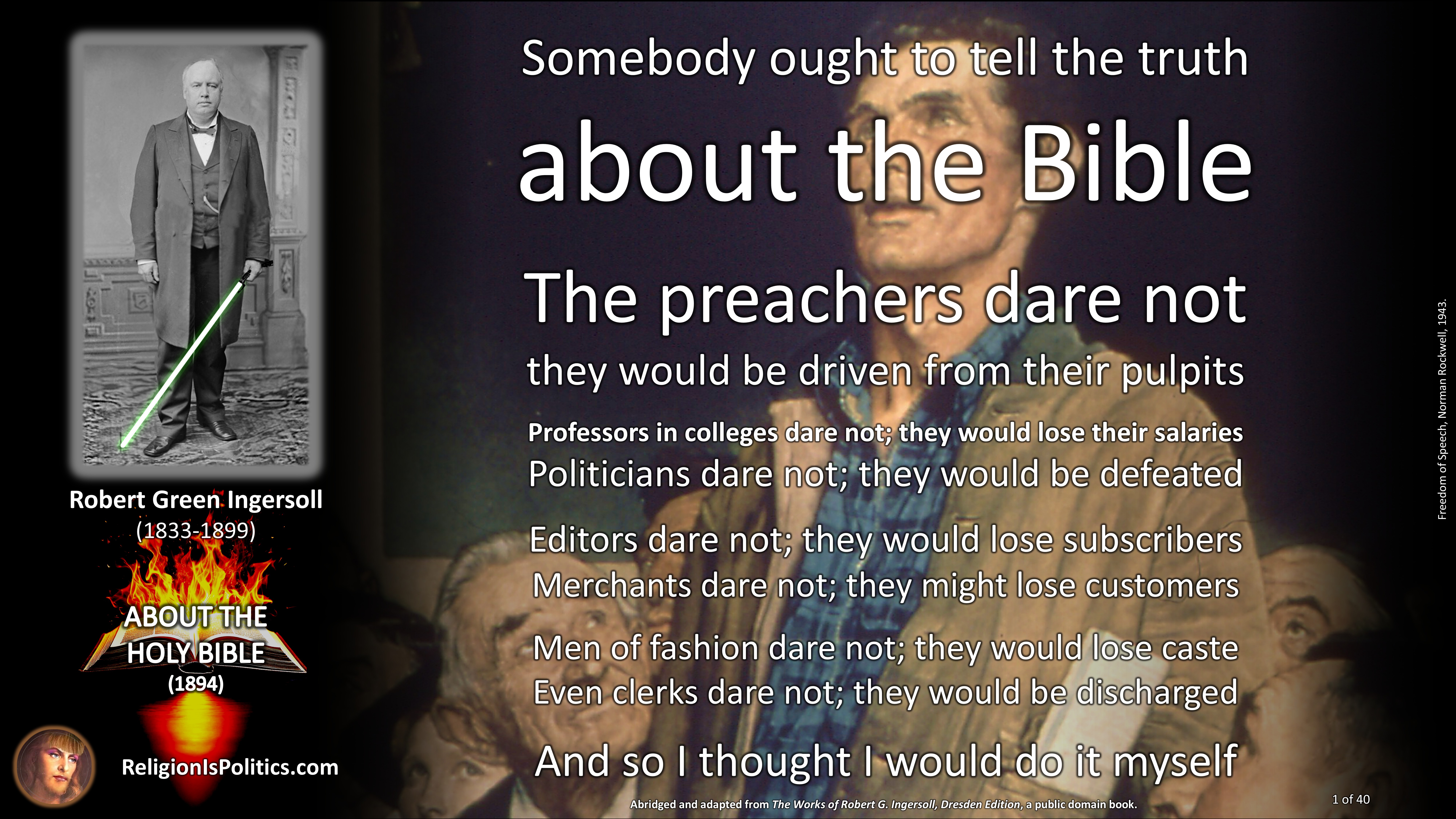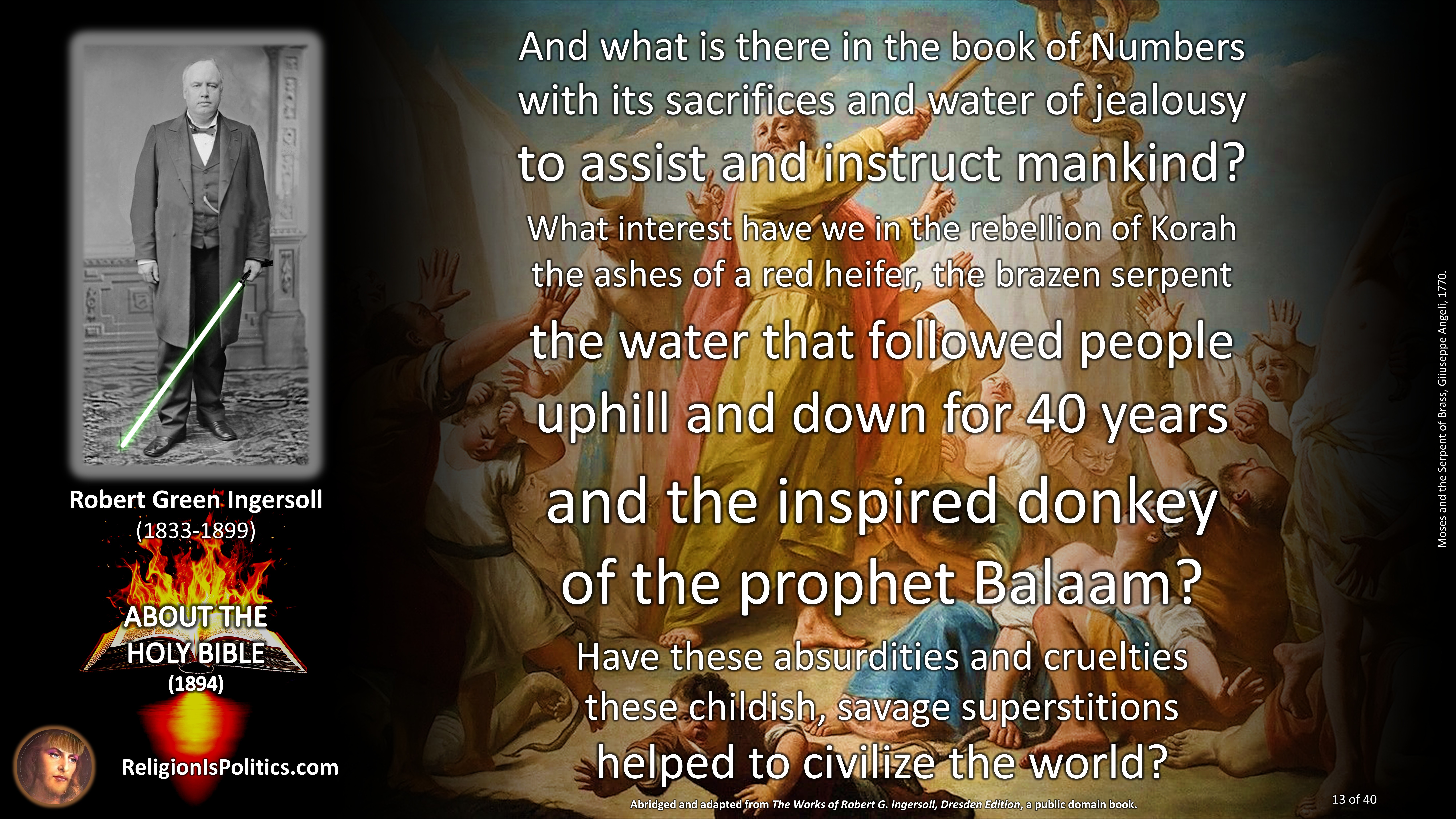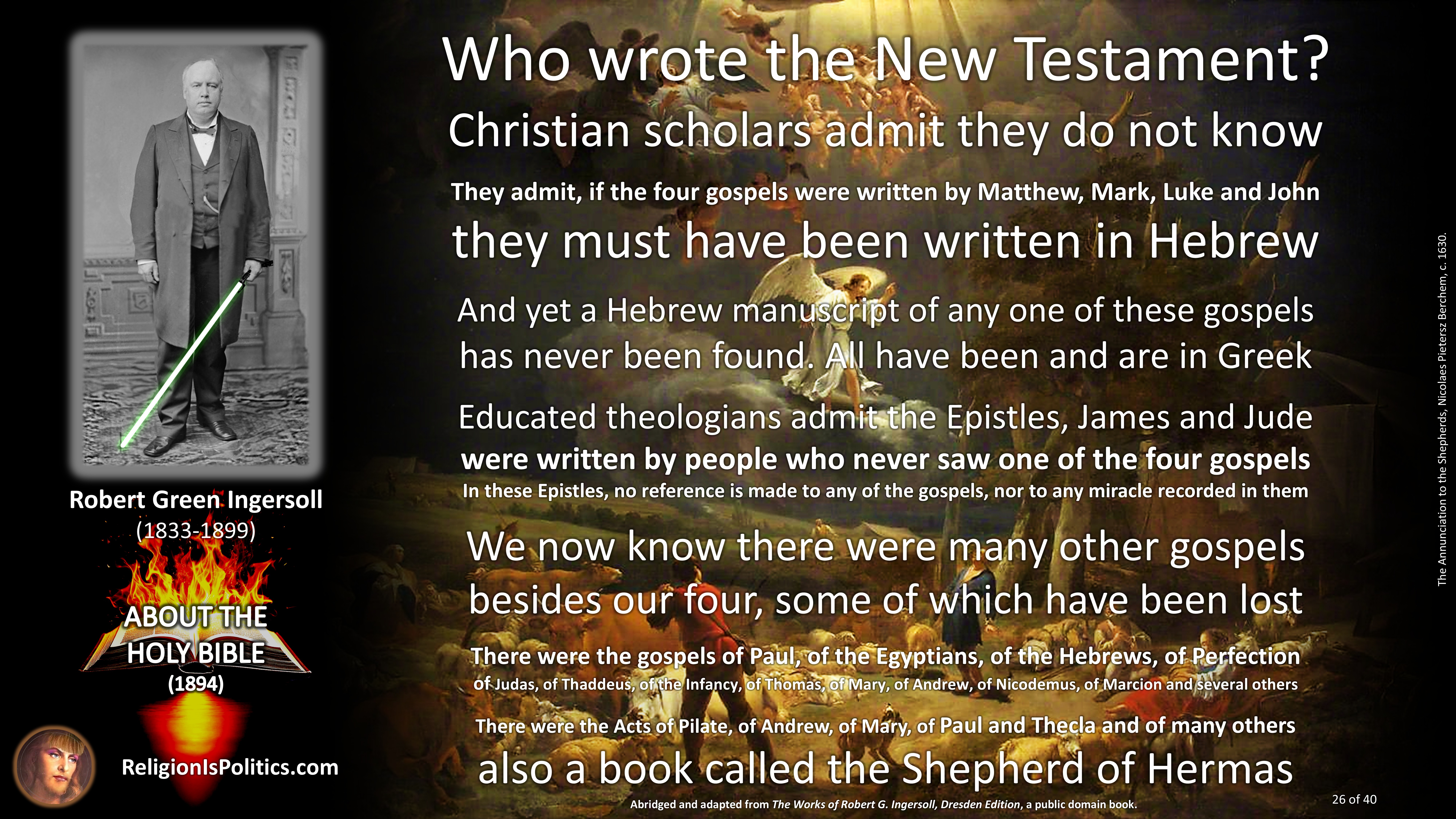 The reason why schoolchildren are told today that the Bible is the absolute truth is the same reason as back in Ingersoll’s day: because it isn’t.