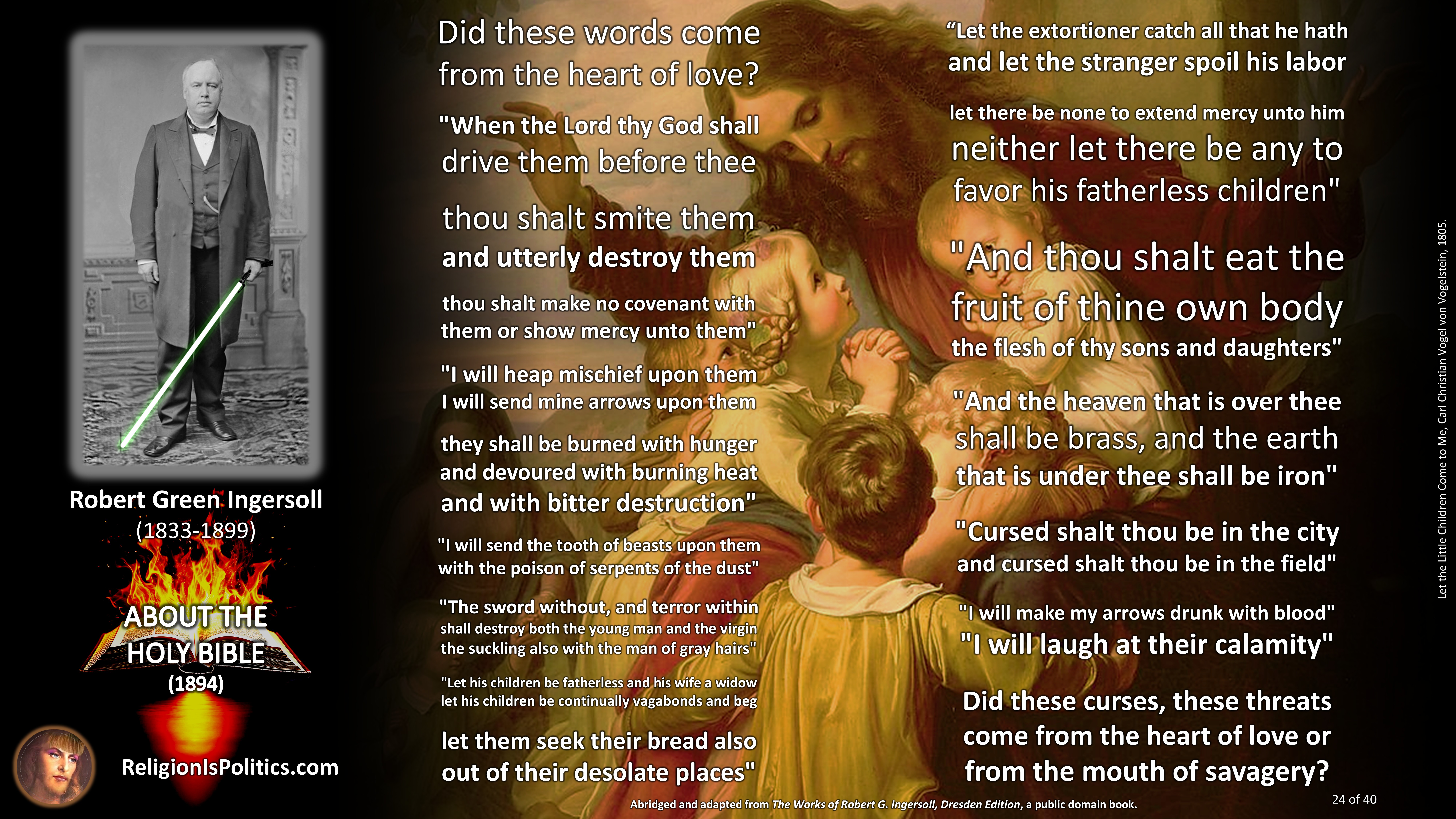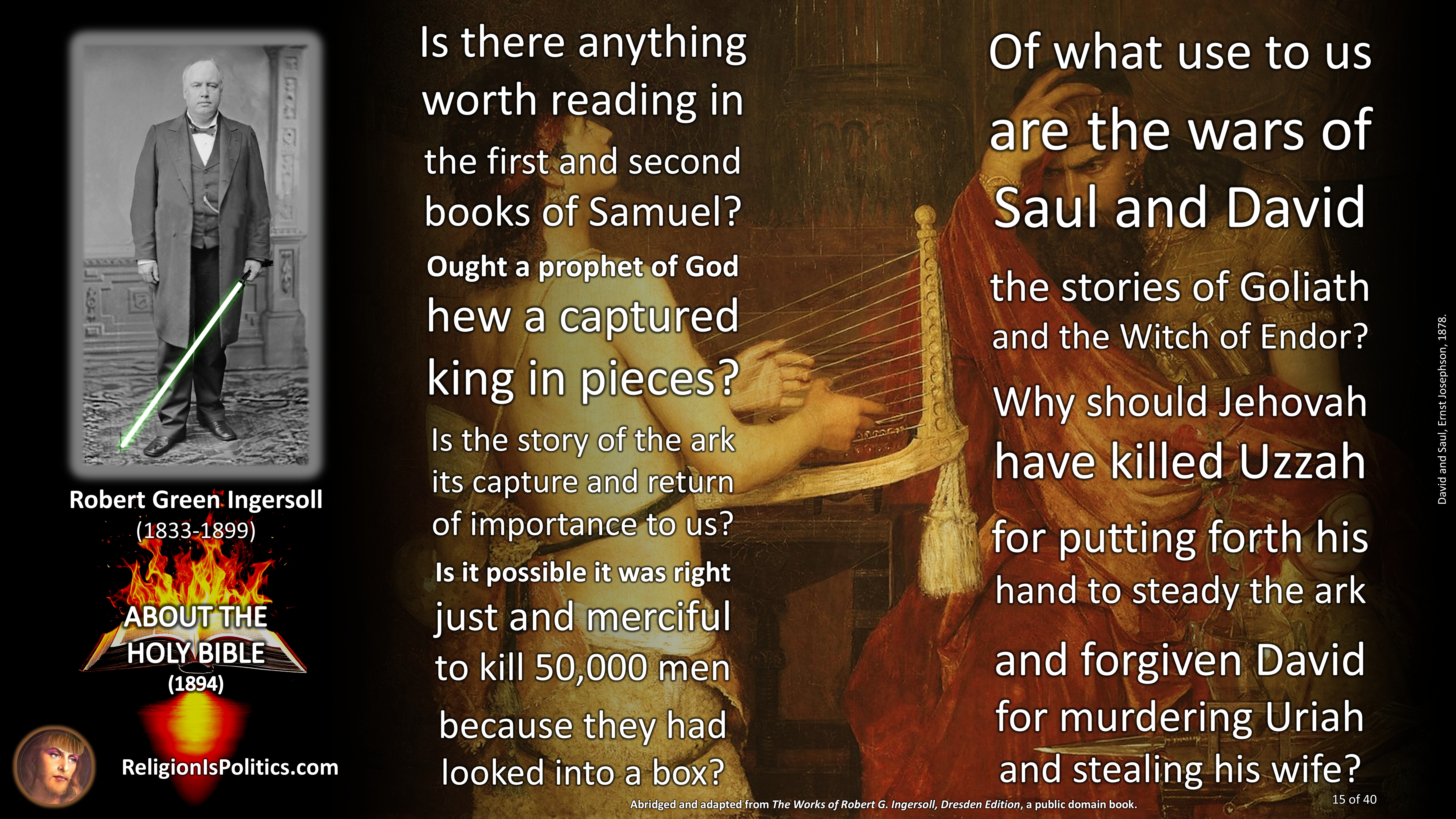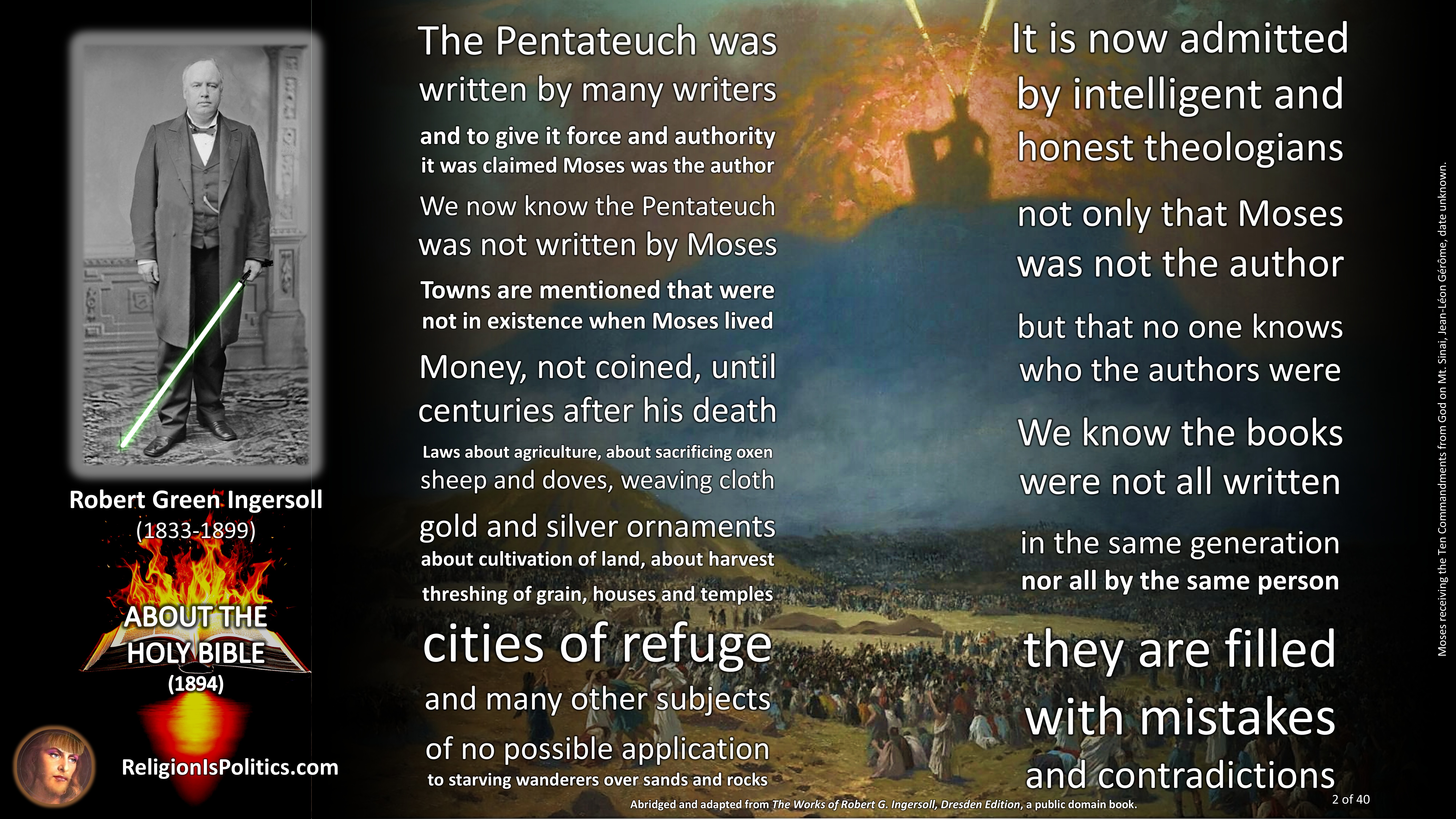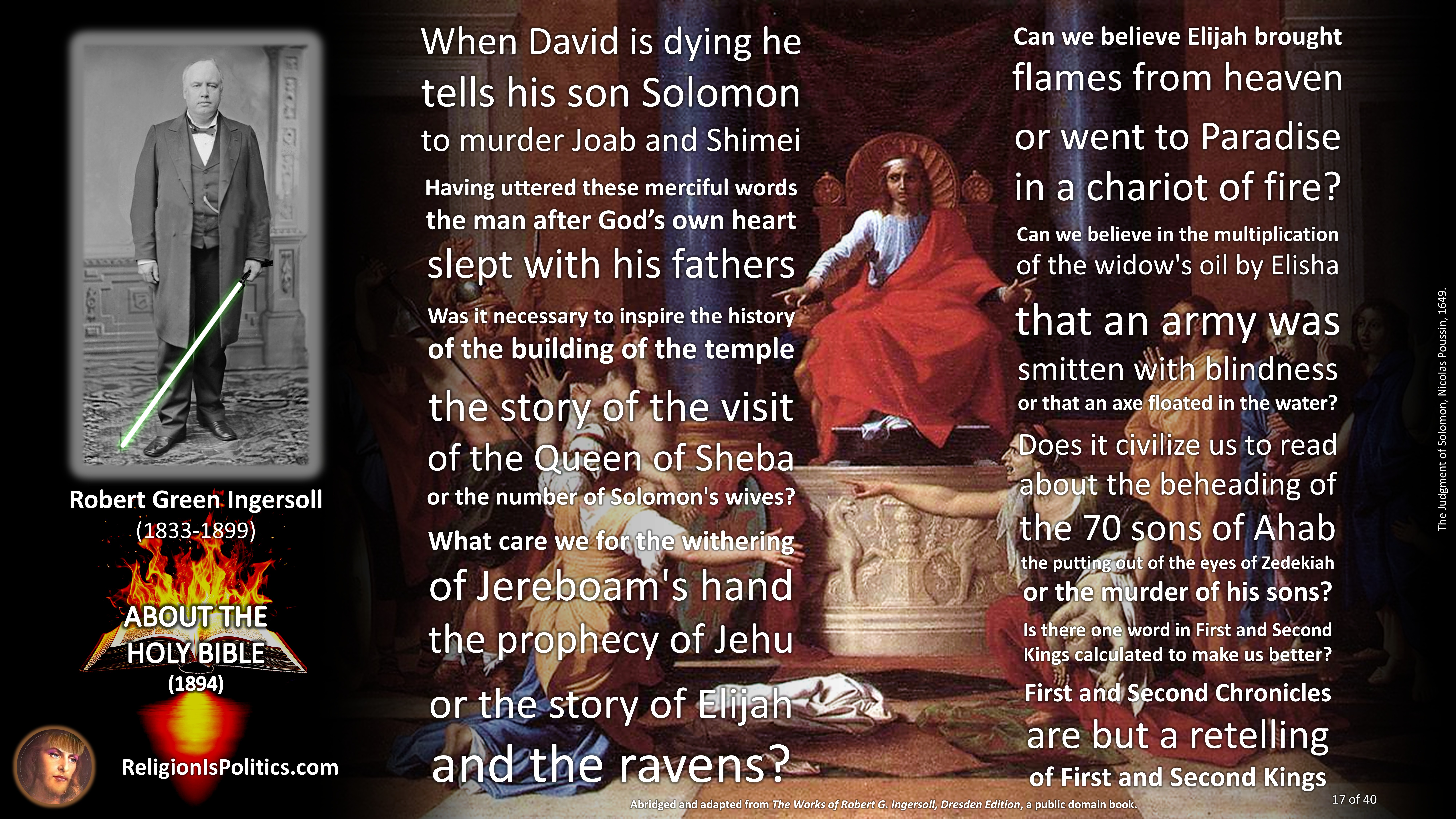 The reason why schoolchildren are told today that the Bible is the absolute truth is the same reason as back in Ingersoll’s day: because it isn’t.