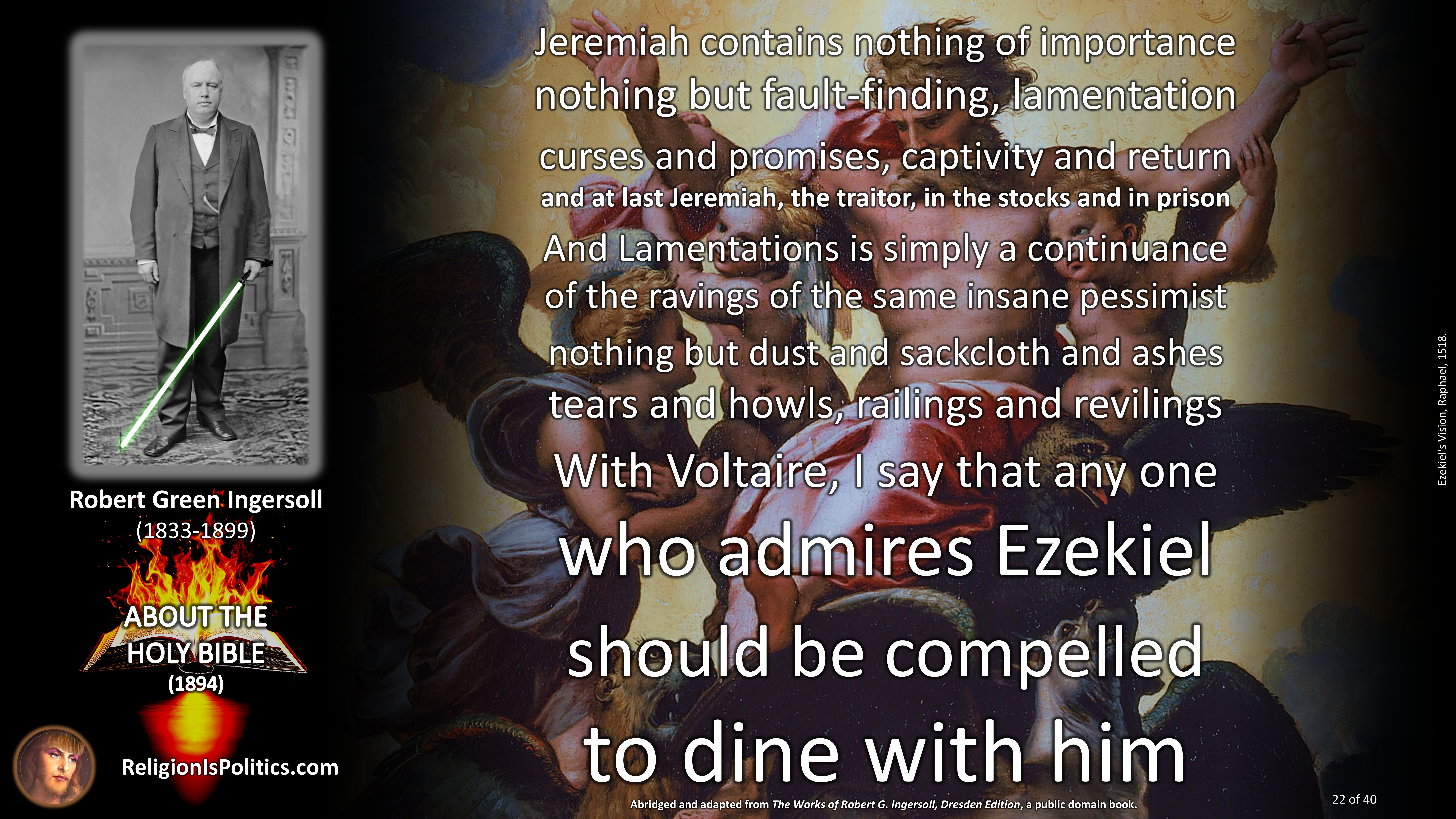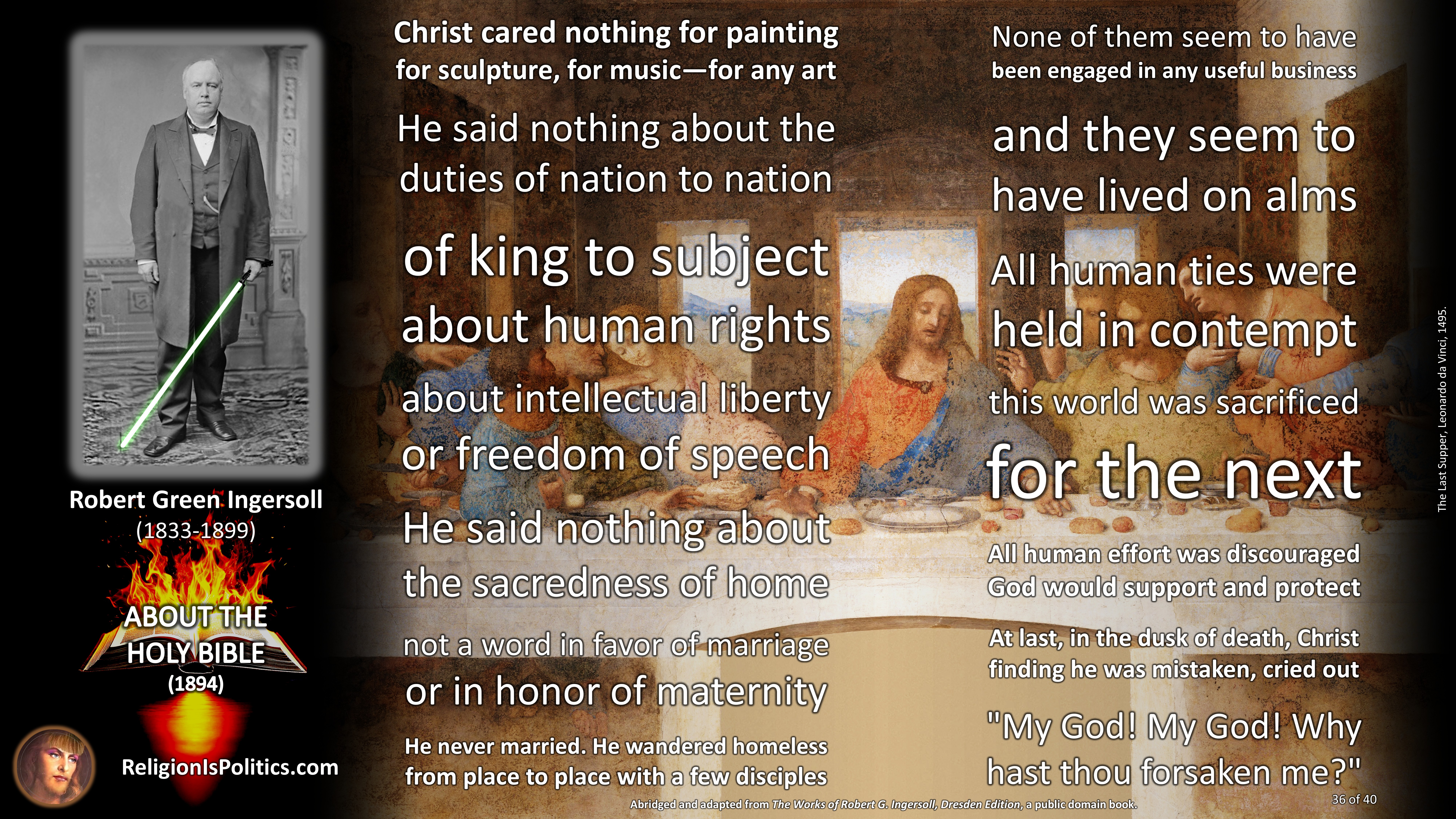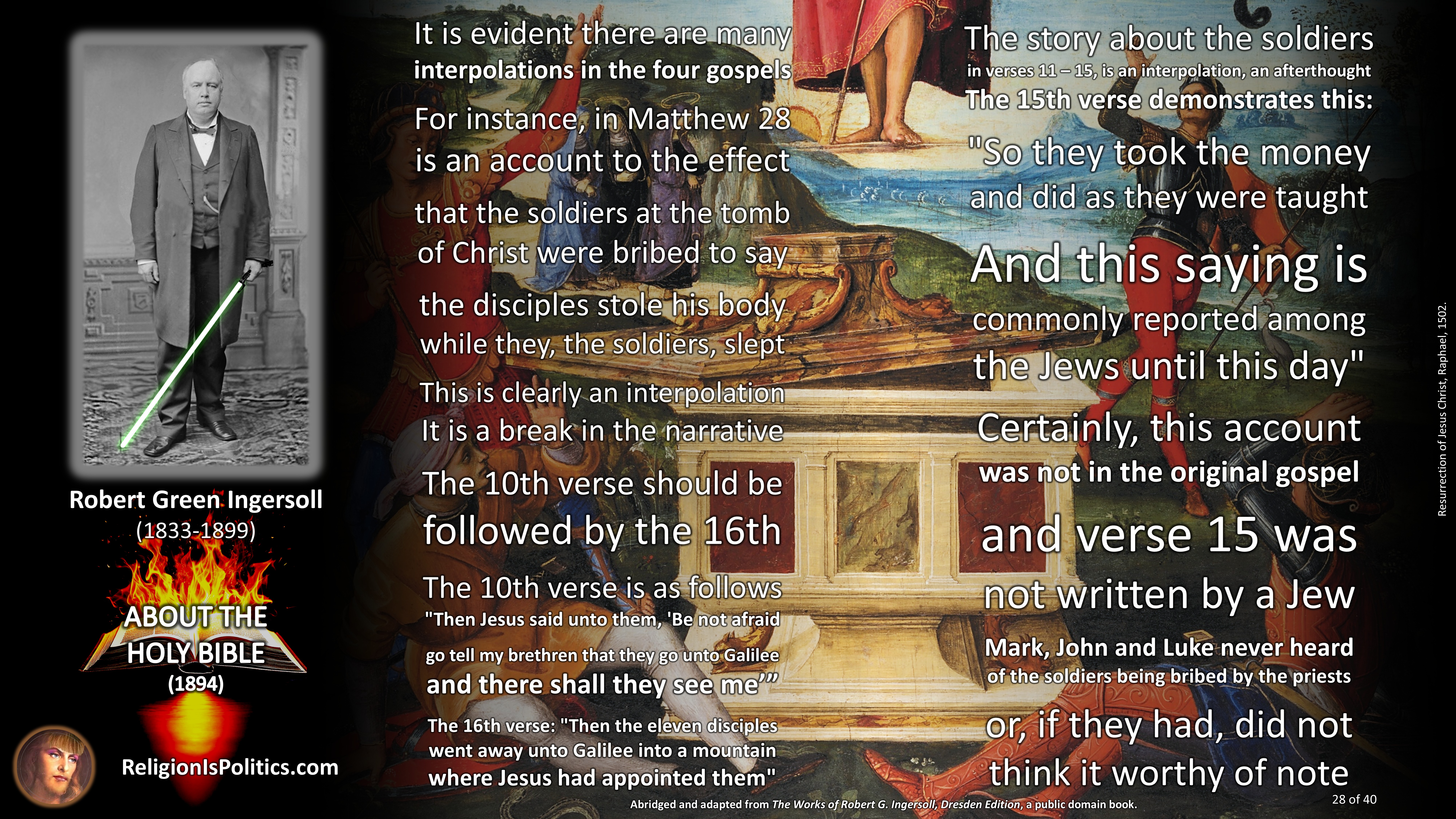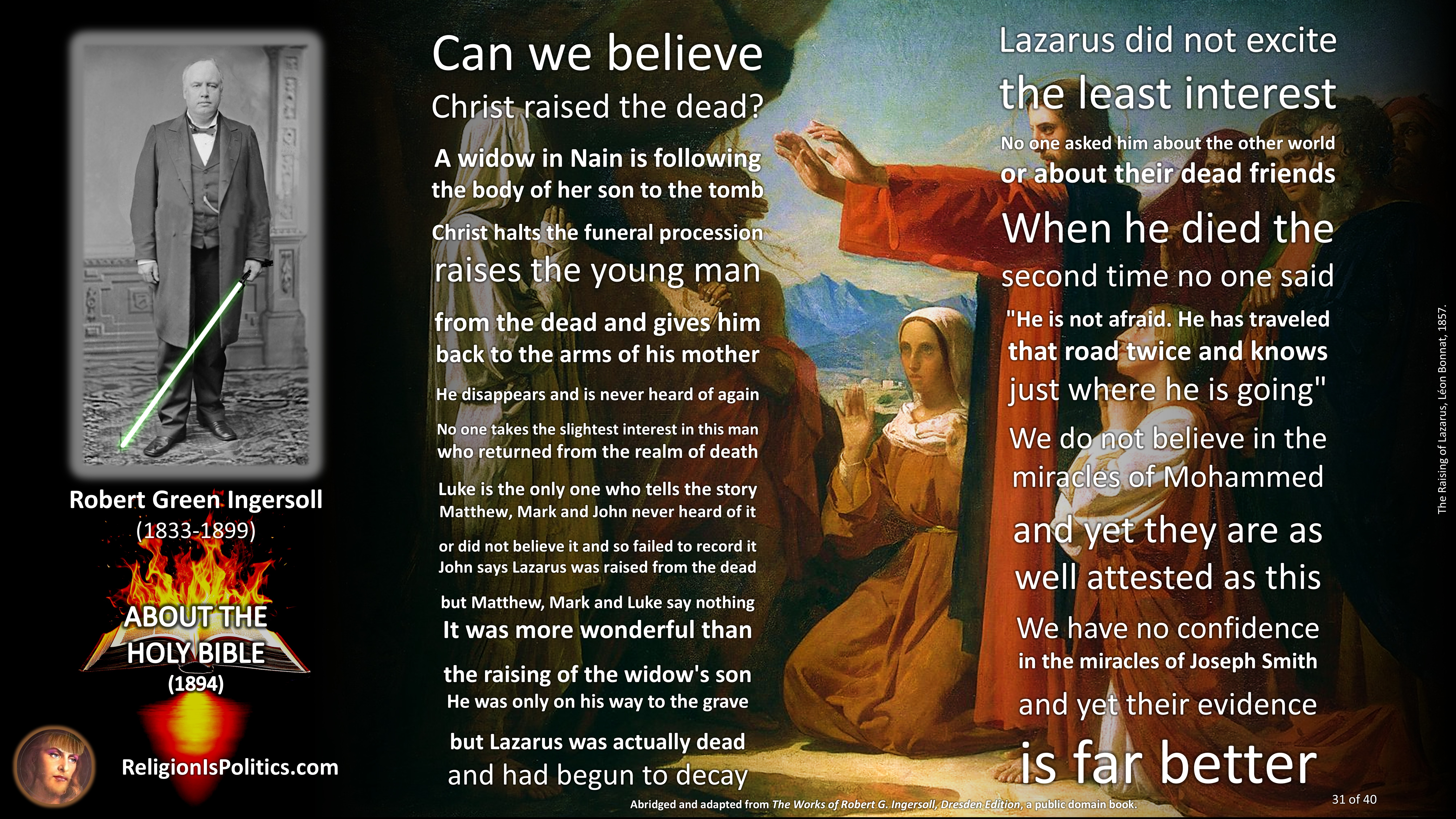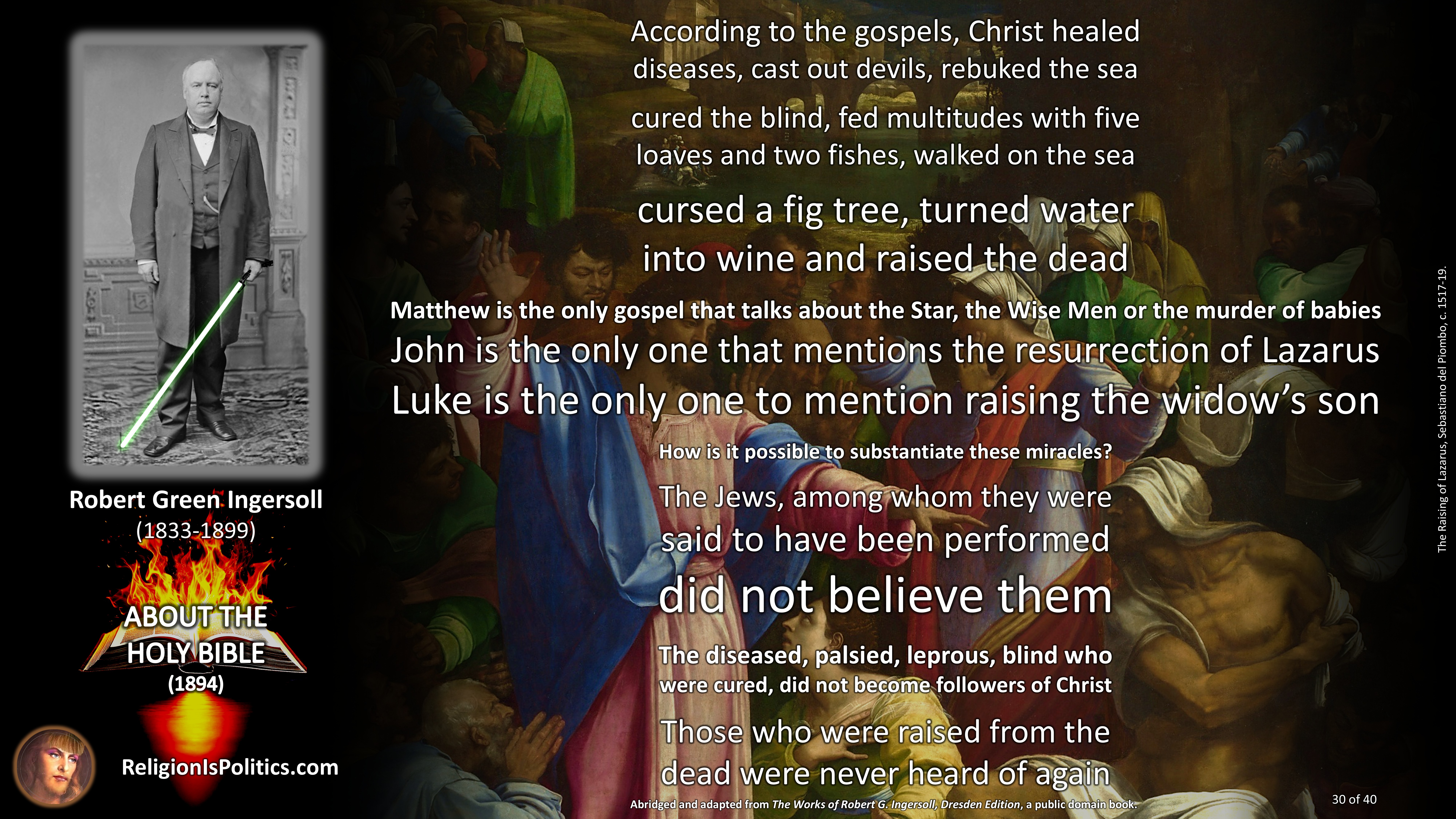The reason why schoolchildren are told today that the Bible is the absolute truth is the same reason as back in Ingersoll’s day: because it isn’t.