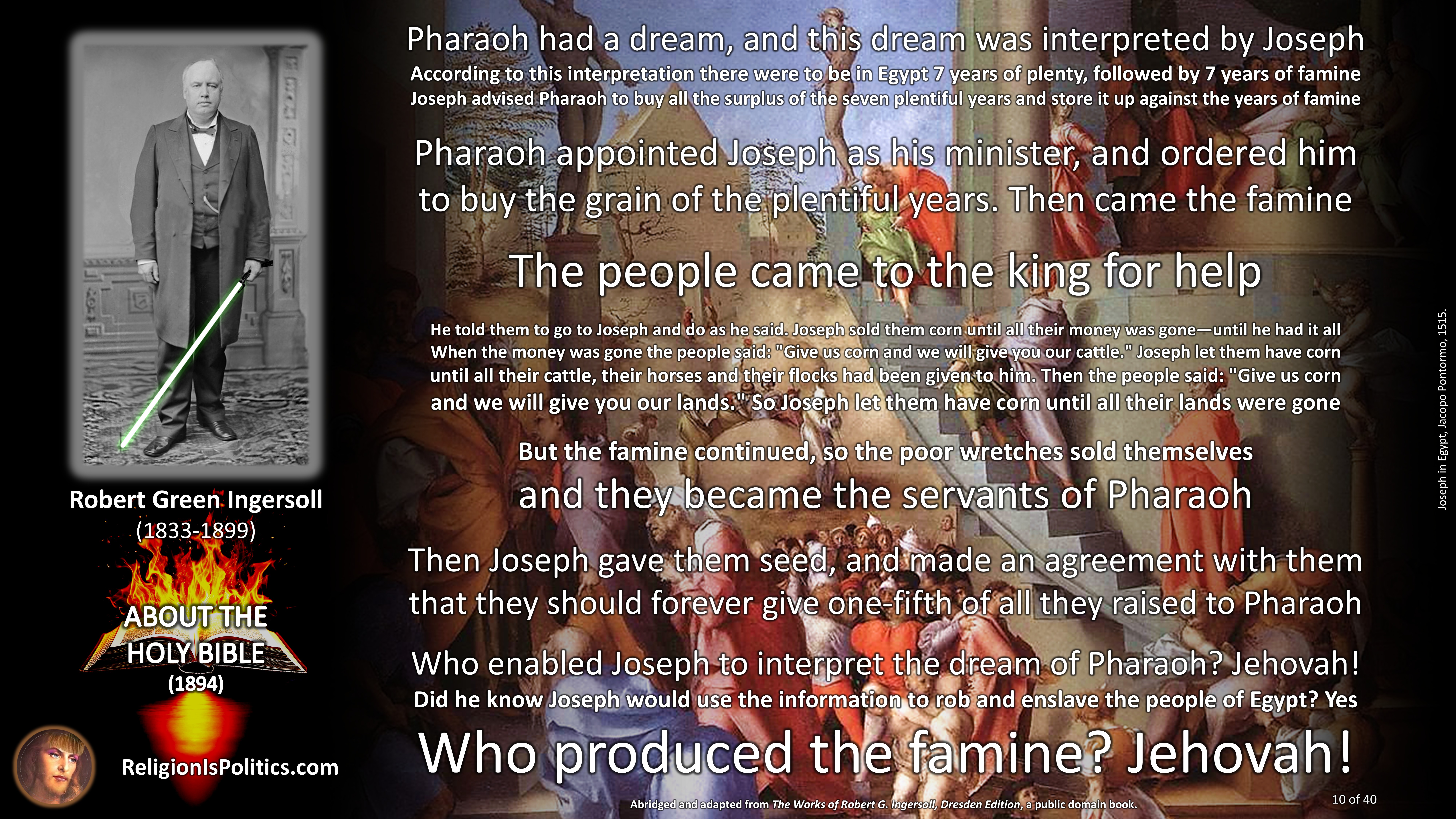 According to Genesis, God had Joseph’s brothers sell him into slavery so he could manipulate his way to power in Egypt, take advantage of a crisis, build a debt economy and enserf the free population.