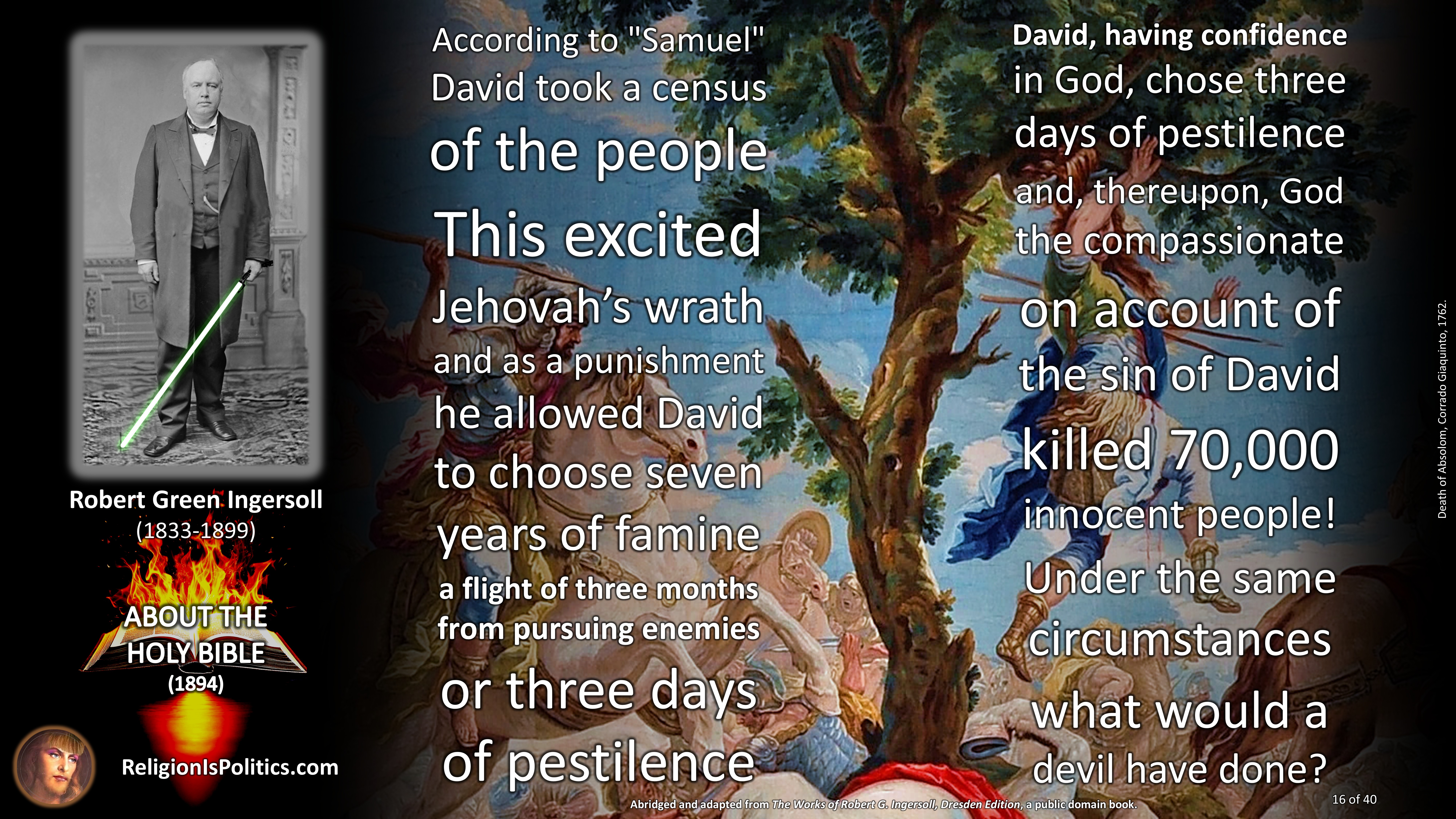 According to Samuel, the author of the universe frequently commands crimes against humanity, sometimes does them himself, and punishes people extra when their participation is not enthusiastic enough.