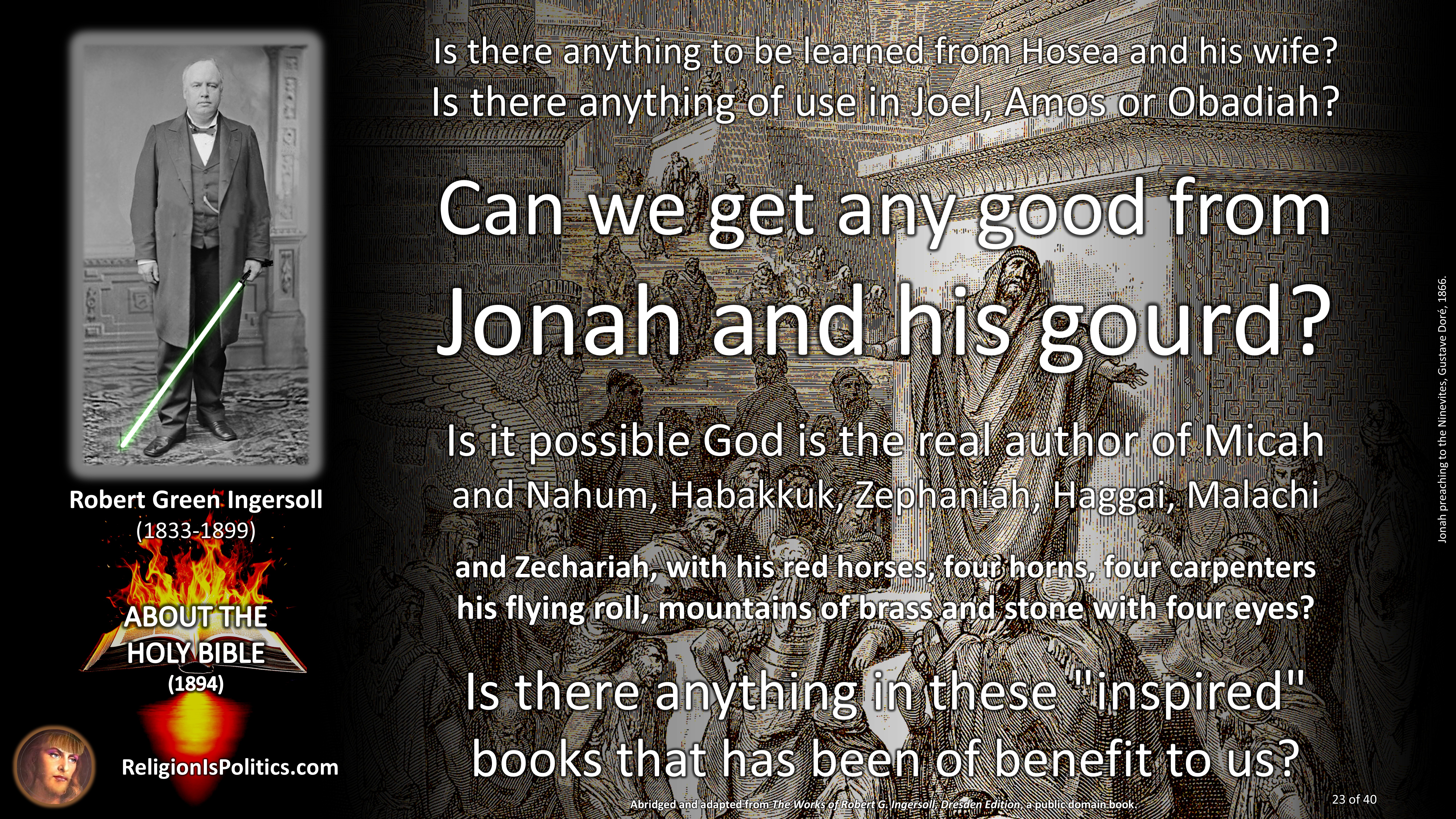 - Jonah preaching to the Ninevites, Gustave Doré, 1866.