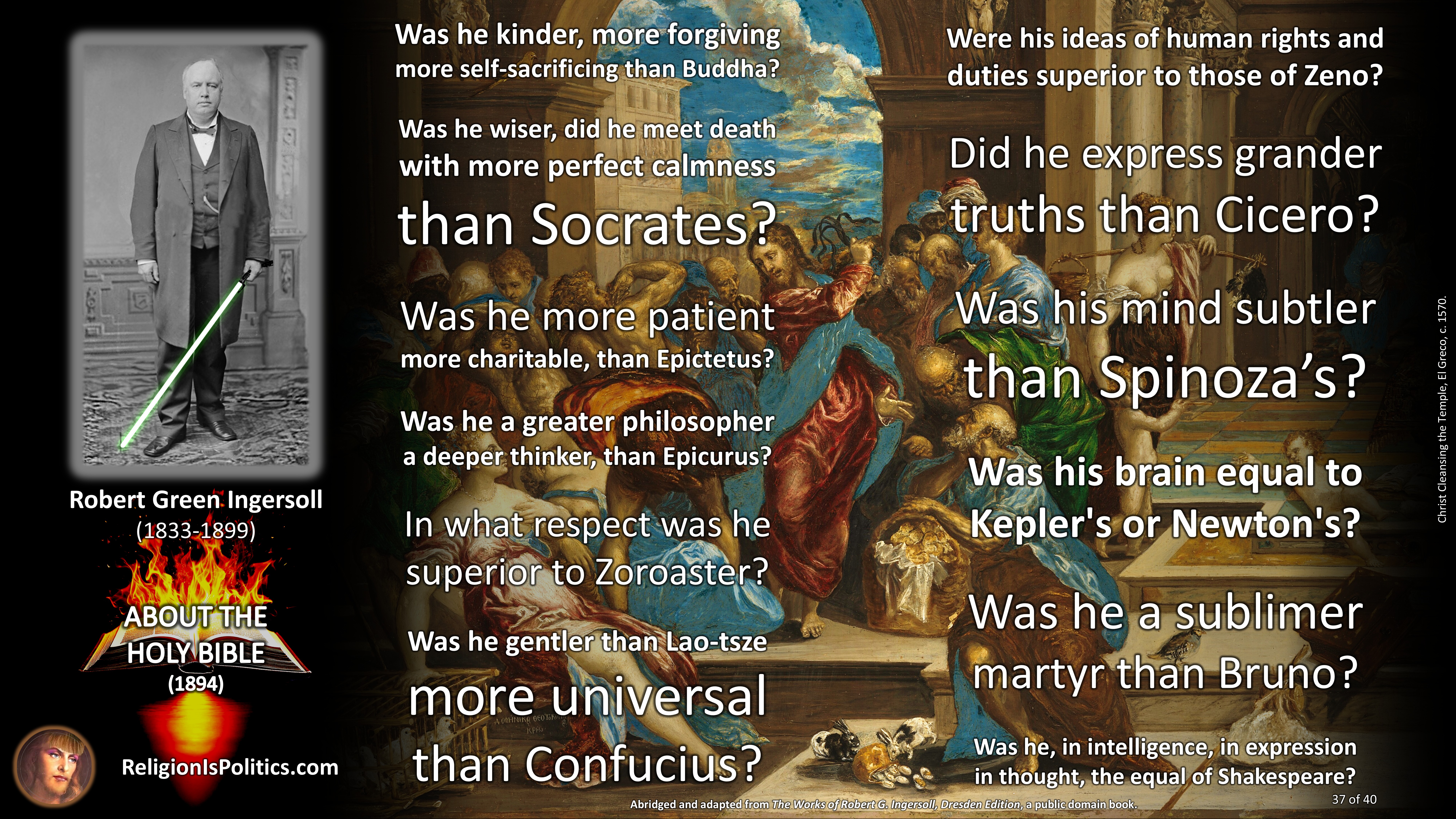 Was Jesus better than Buddha? Epictetus? Cicero? Spinoza? Bruno?