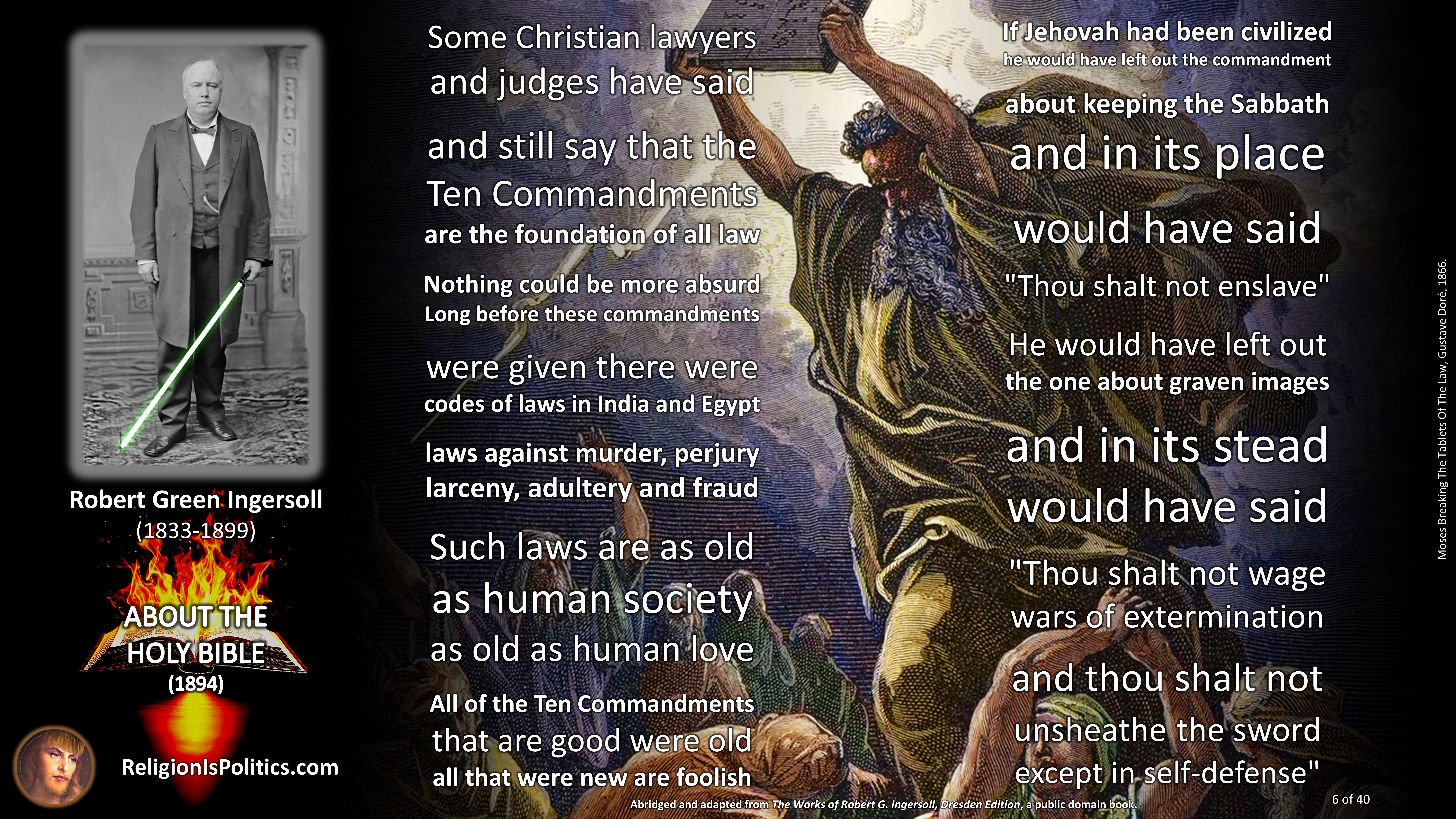 Today, multiple US states are forcing public school teachers to teach that the Ten Commandments were inspired personally by the author of the universe and were the first and best laws of all time.