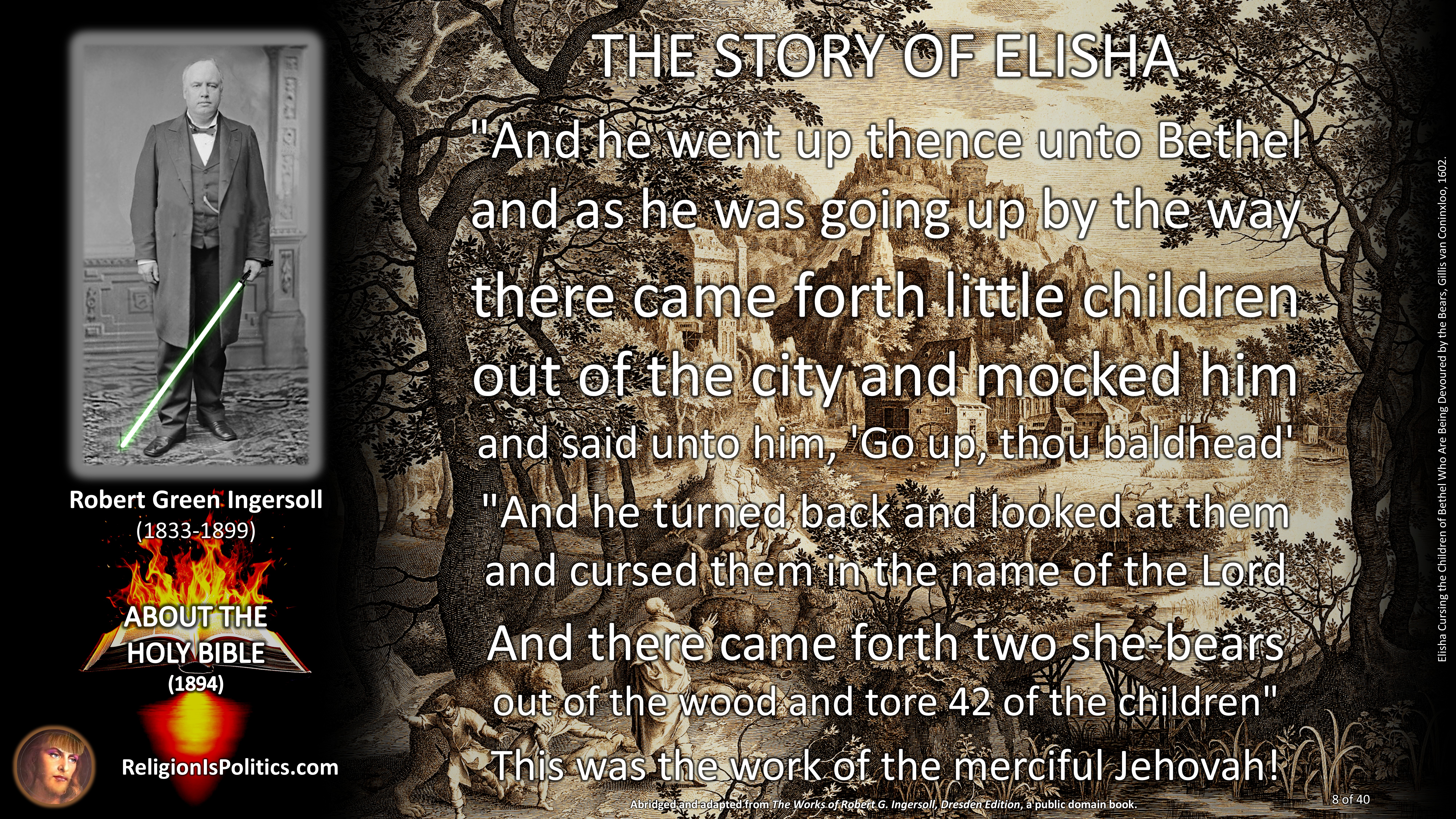 - Elisha Cursing the Children of Bethel Who Are Being Devoured by the Bears, Gillis van Coninxloo, 1602.