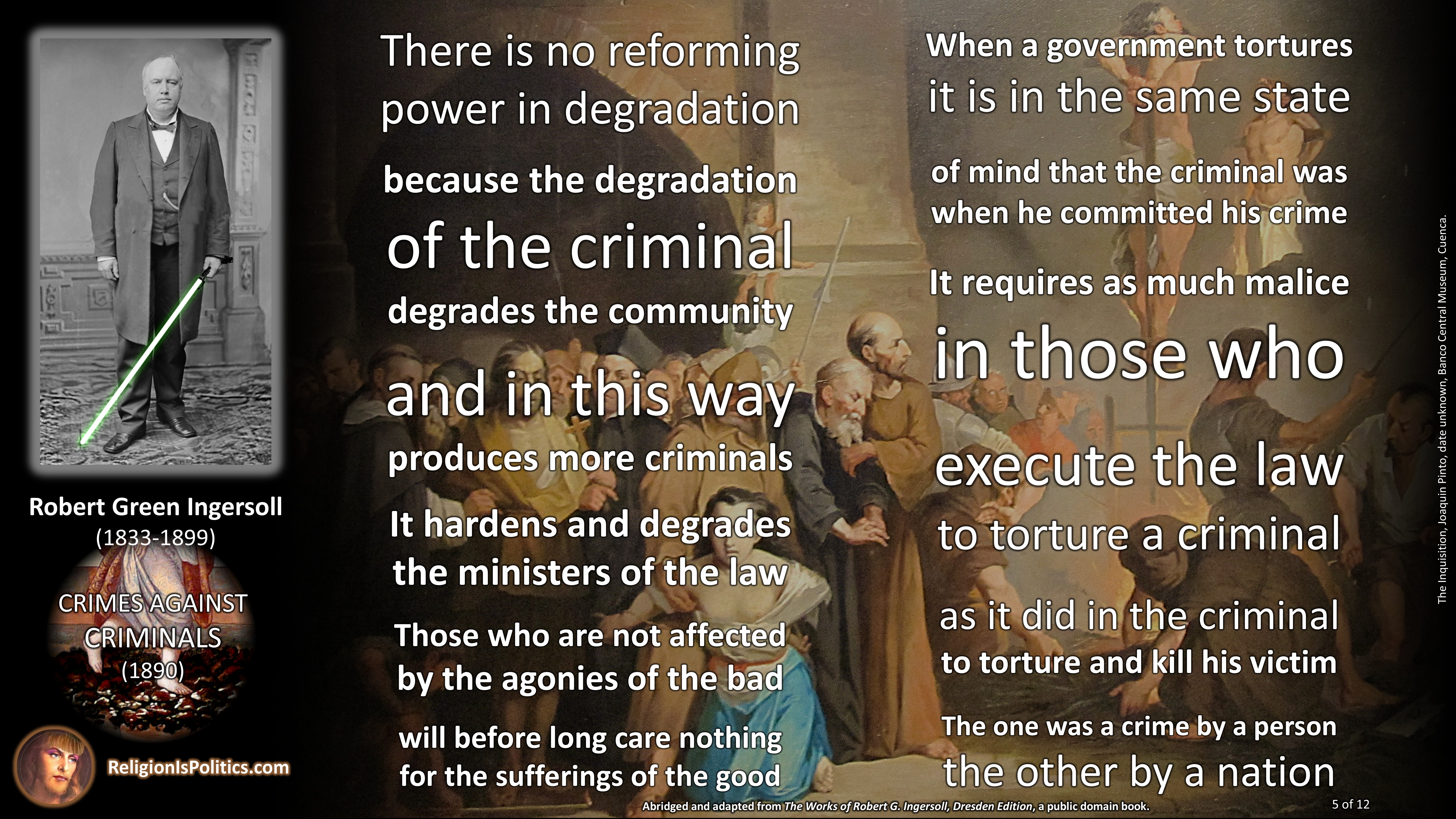 Well, if there’s anything to learn from history about cruel and unusual punishments, it’s that, in the long term, they undermine the state. They inspire resentment. They create internal enemies. And they make them right.