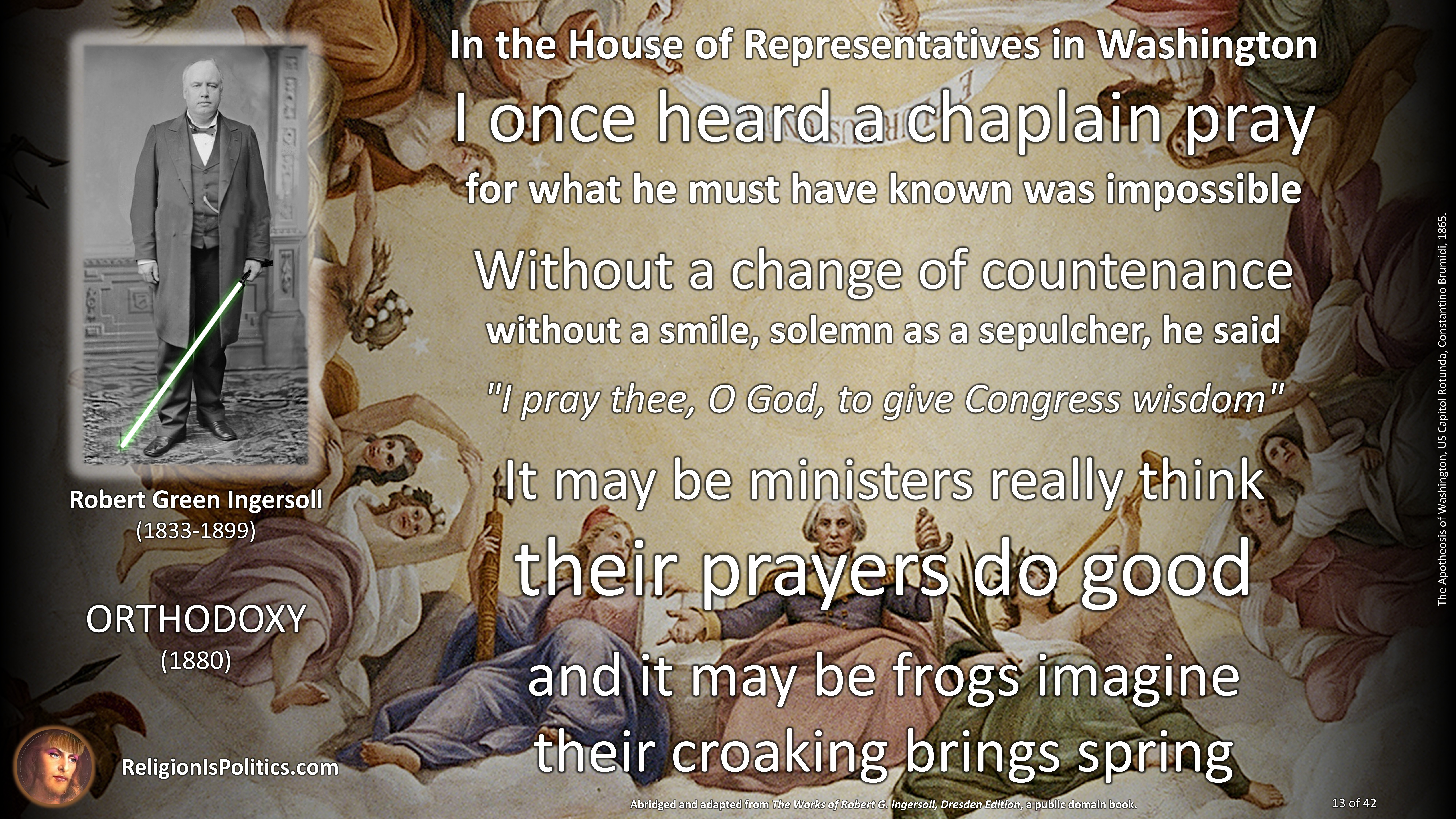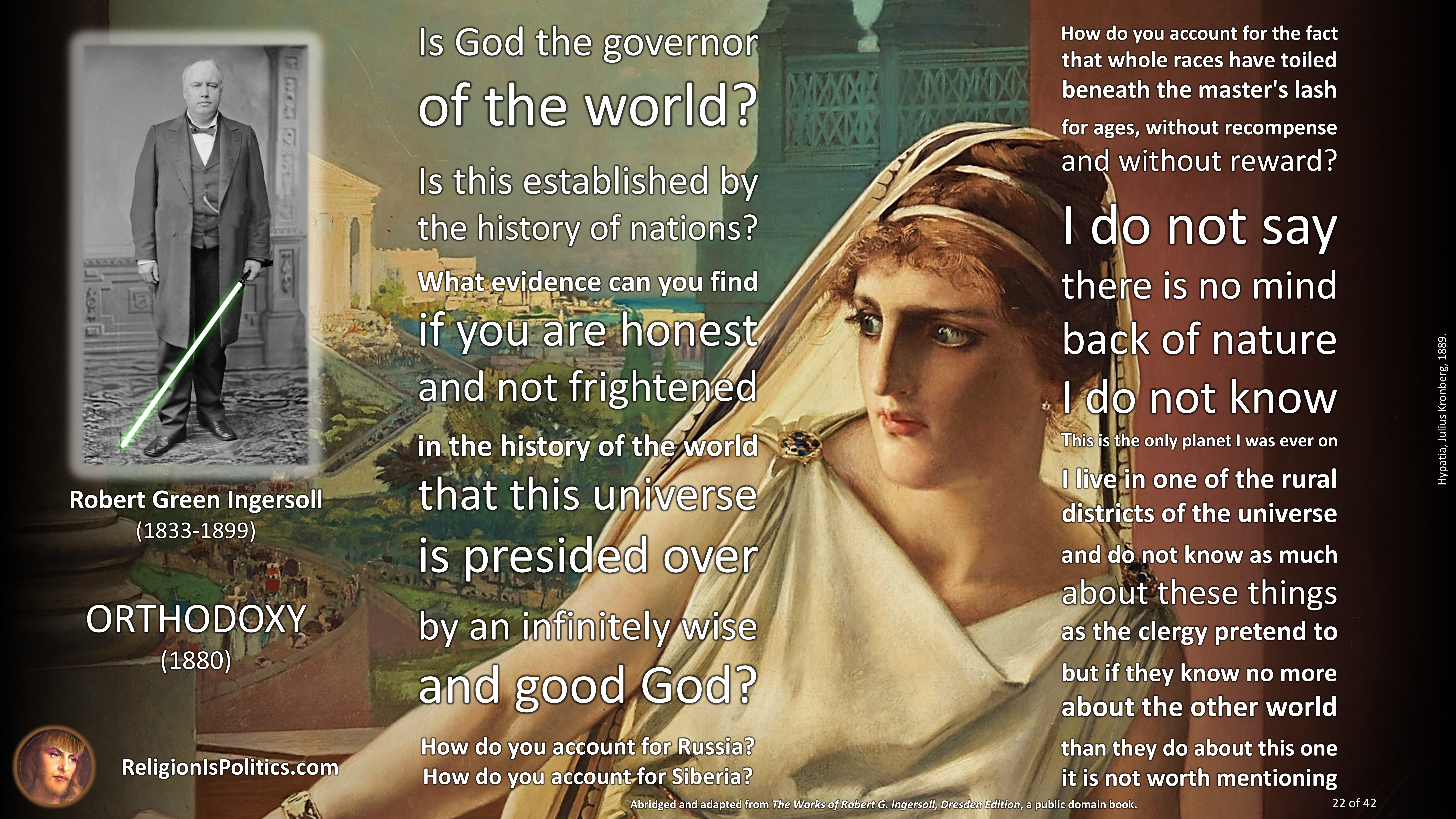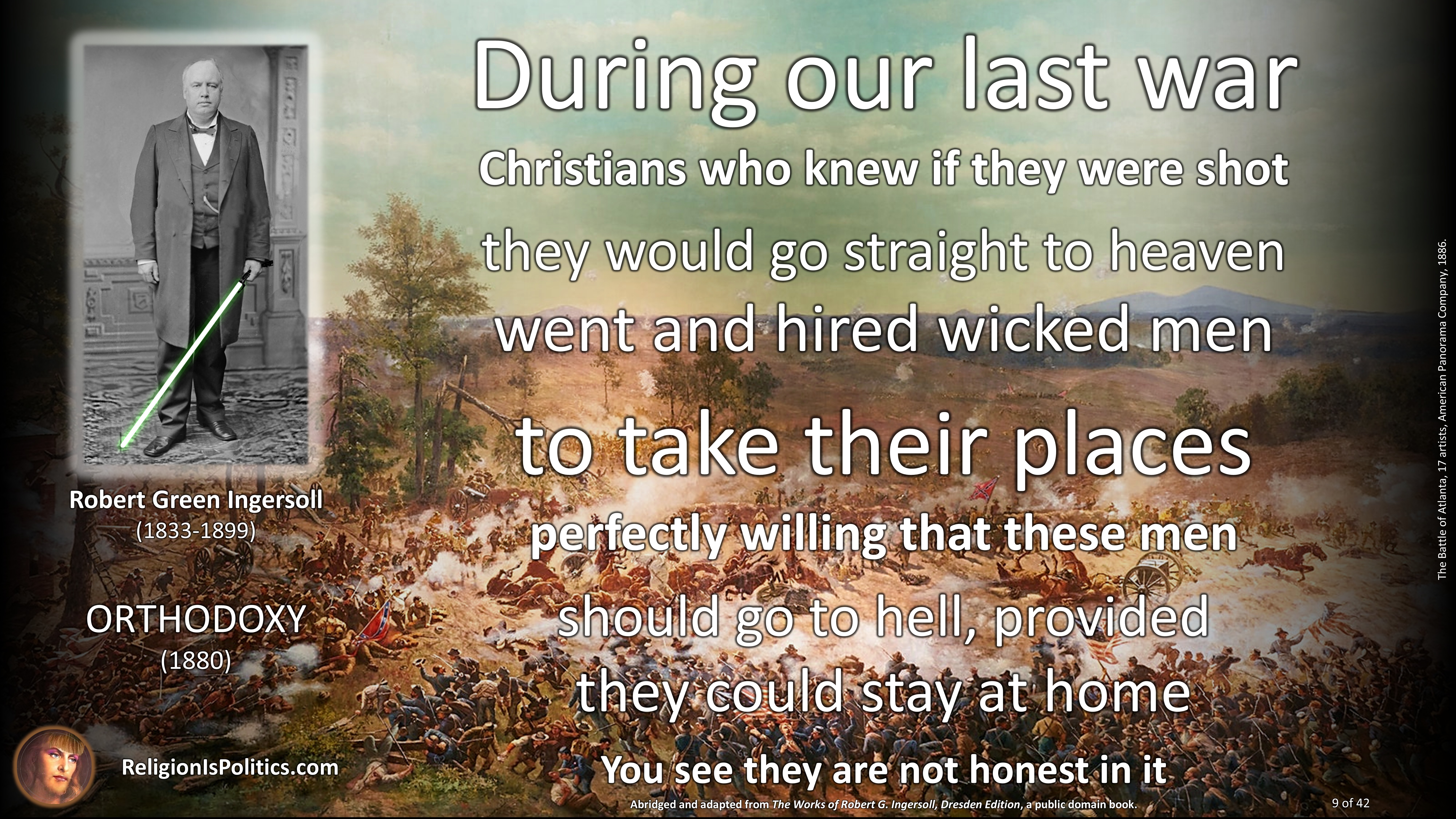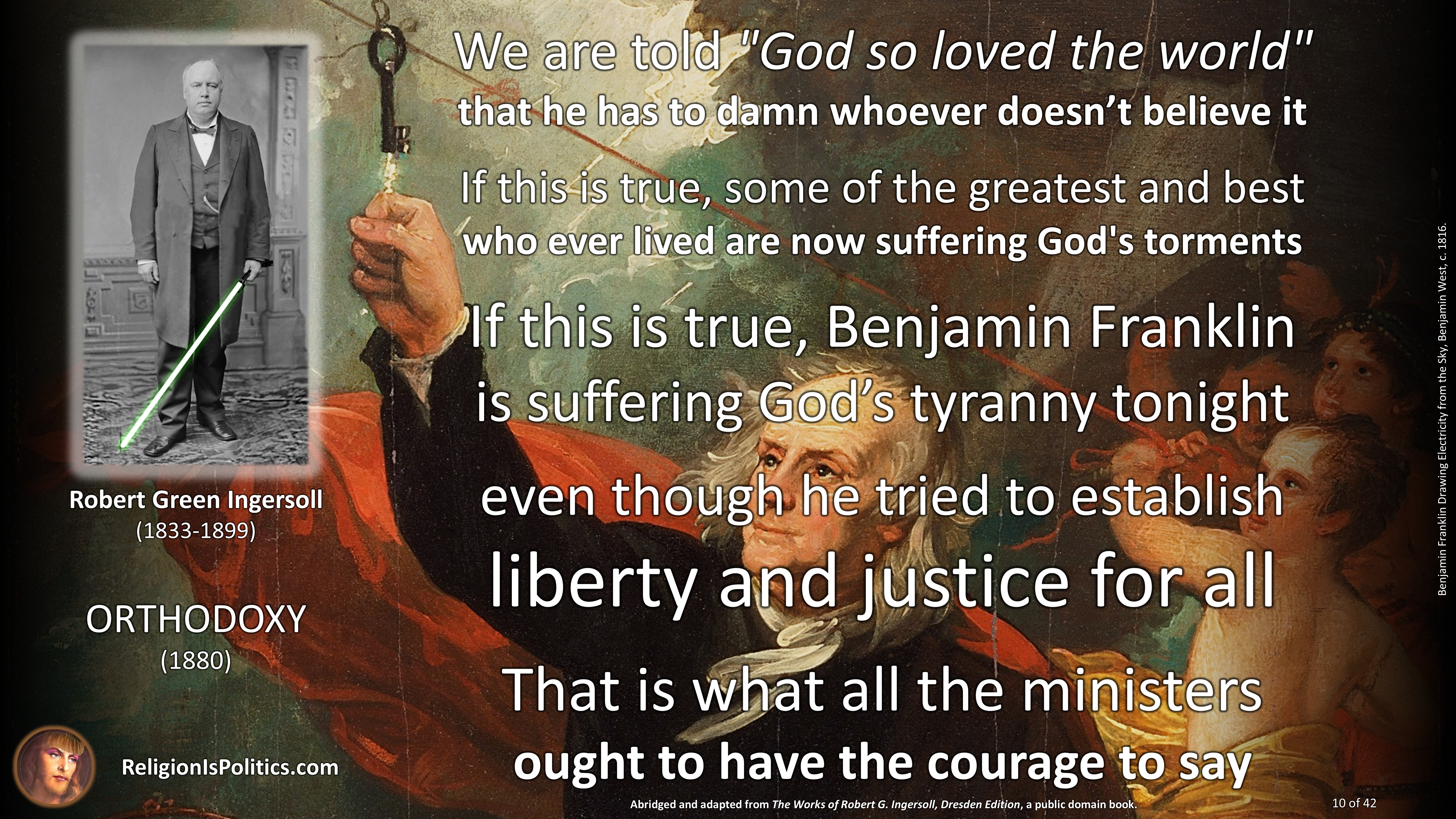 But these people were not yet known as “Fundamentalists.” Otherwise, Ingersoll could have called this speech “Fundamentalism,” and it would have better conveyed his themes. They are resonant again in 2025.