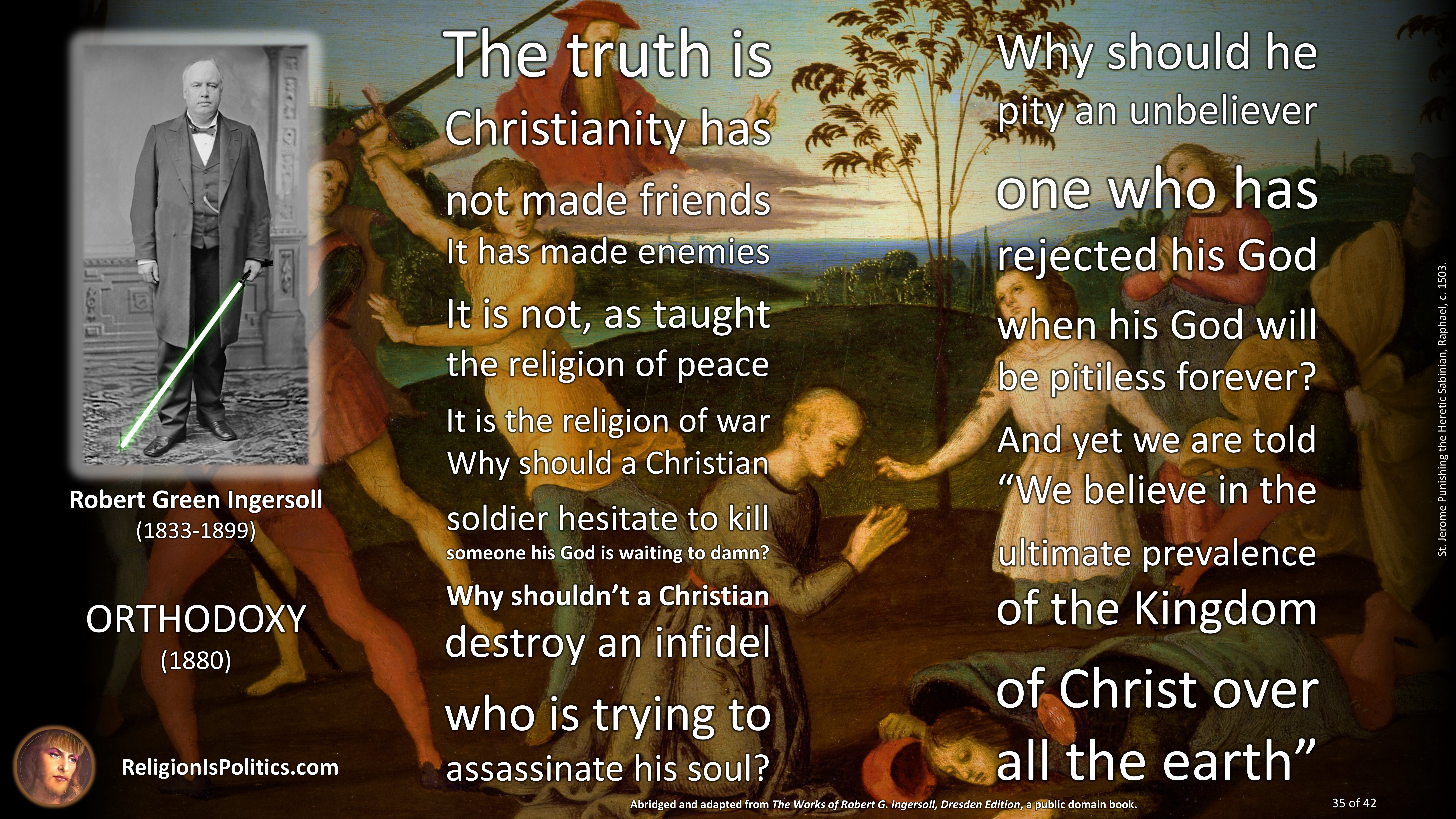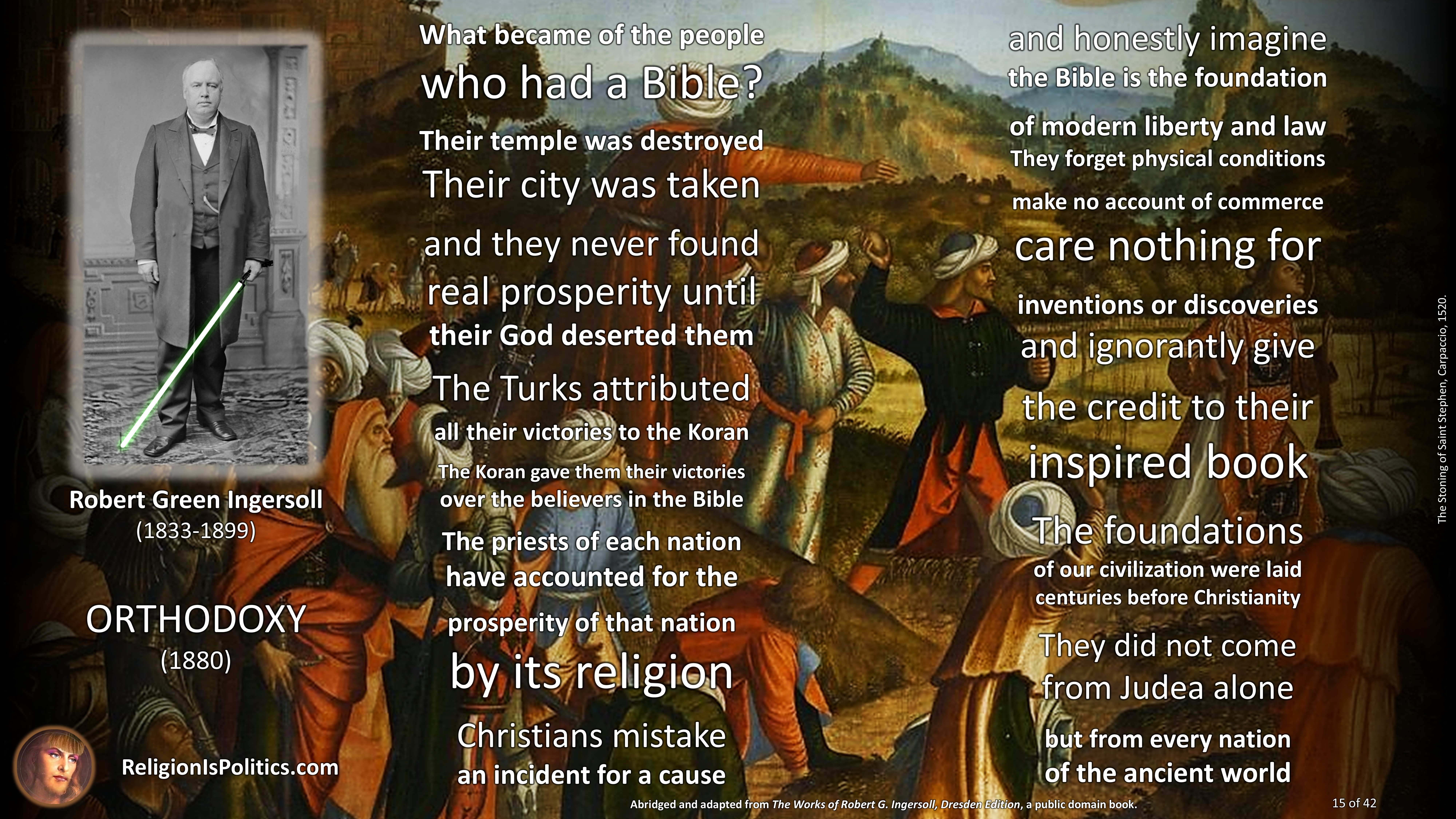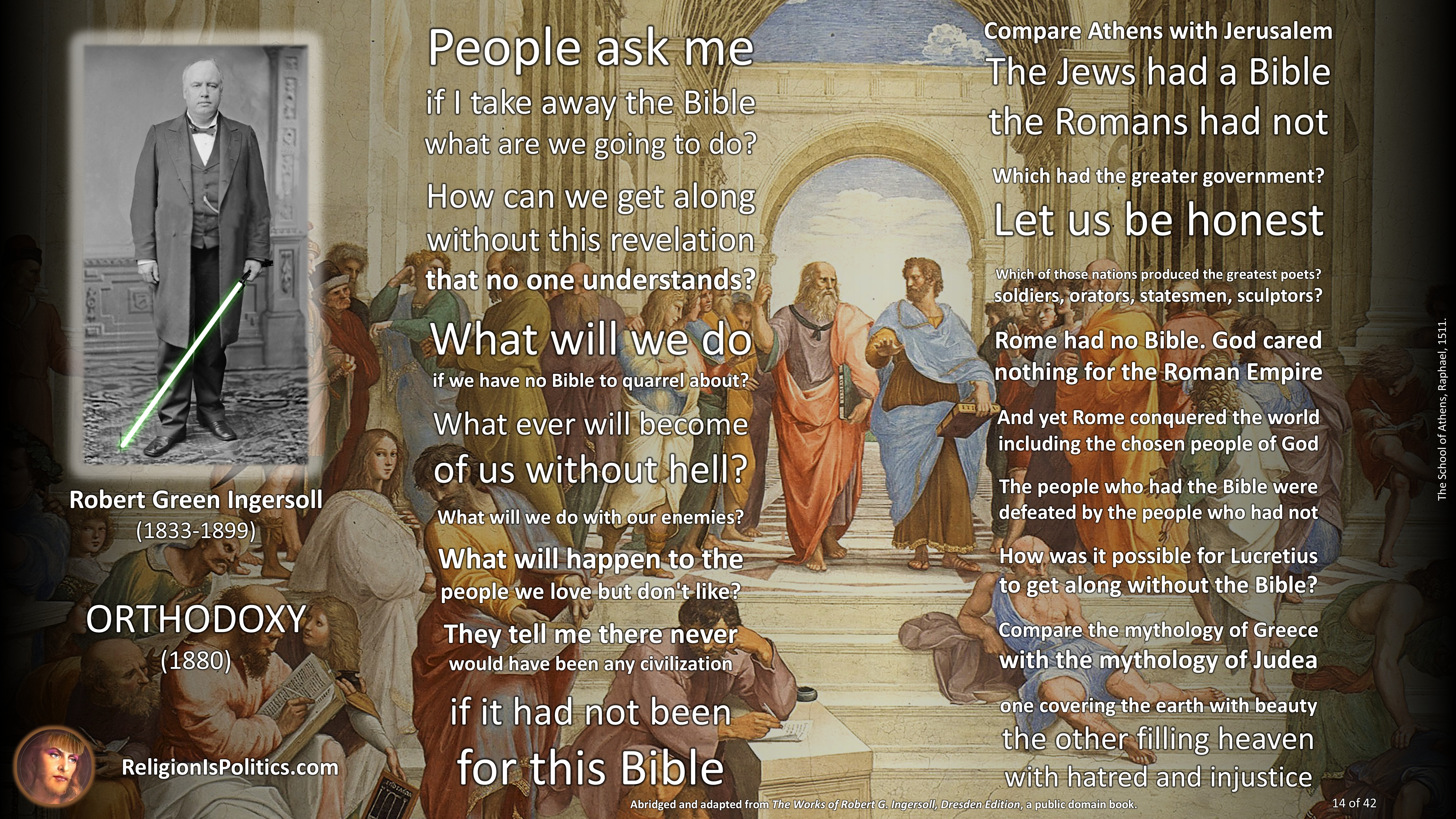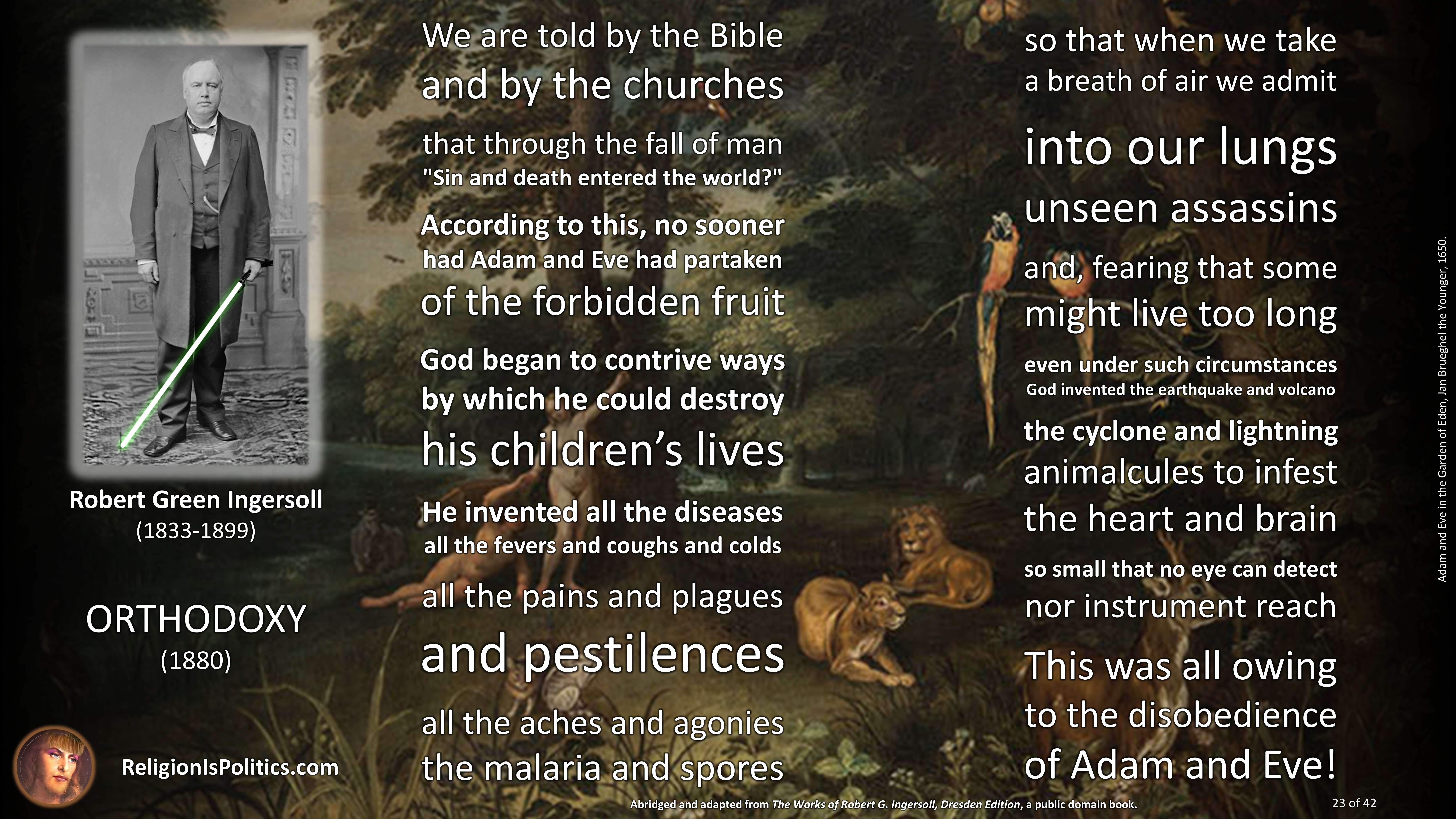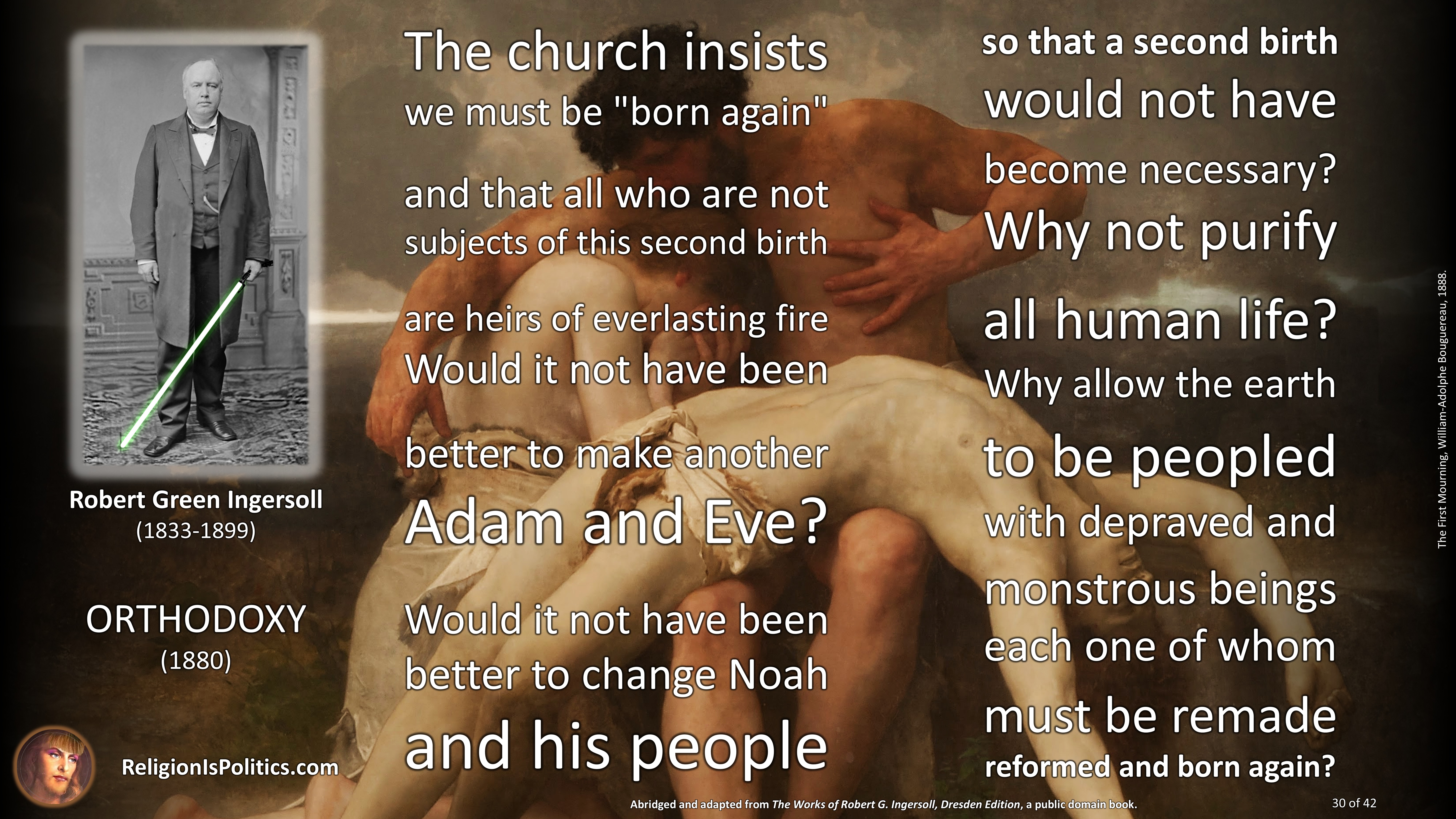 But these people were not yet known as “Fundamentalists.” Otherwise, Ingersoll could have called this speech “Fundamentalism,” and it would have better conveyed his themes. They are resonant again in 2025.