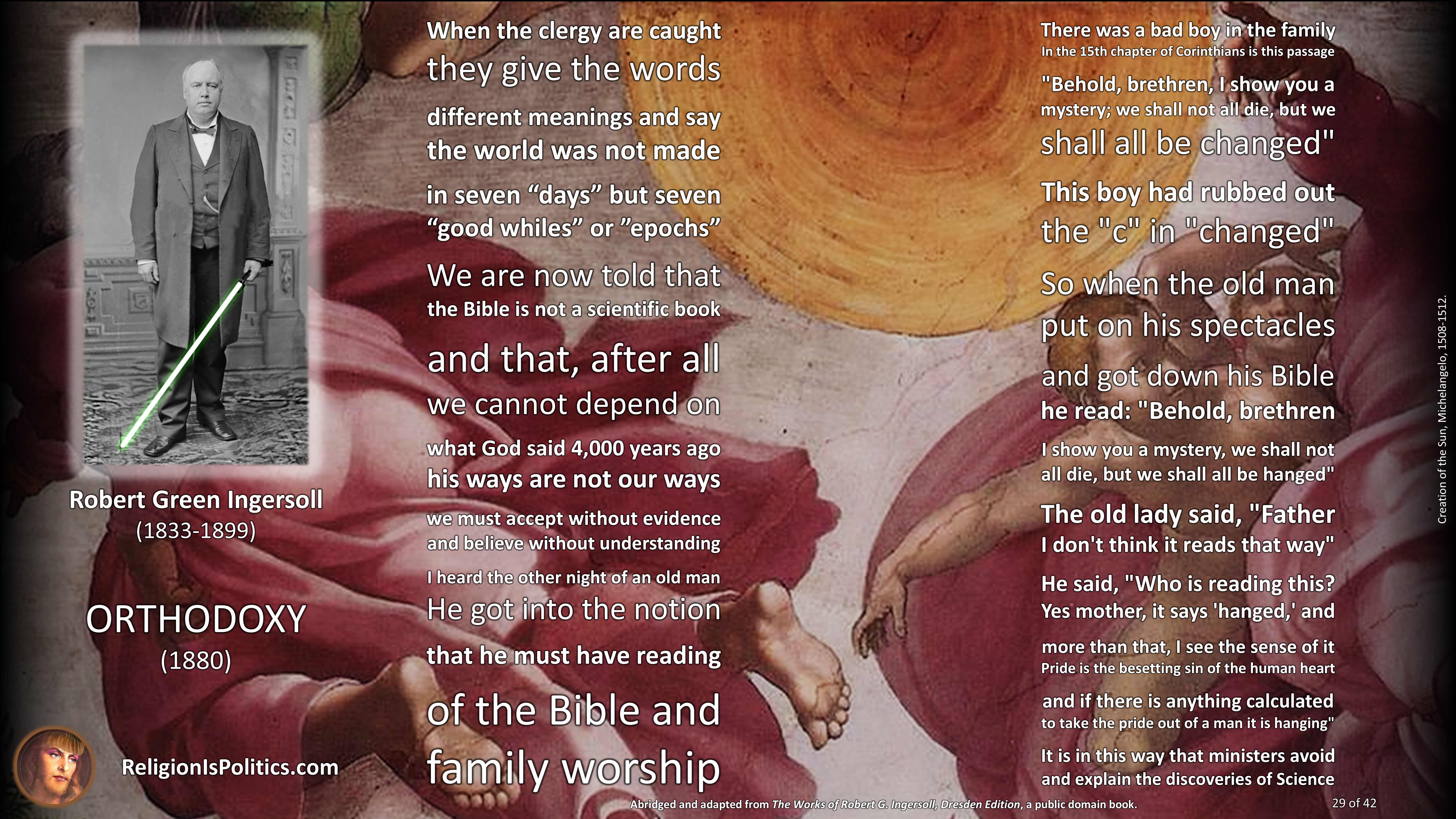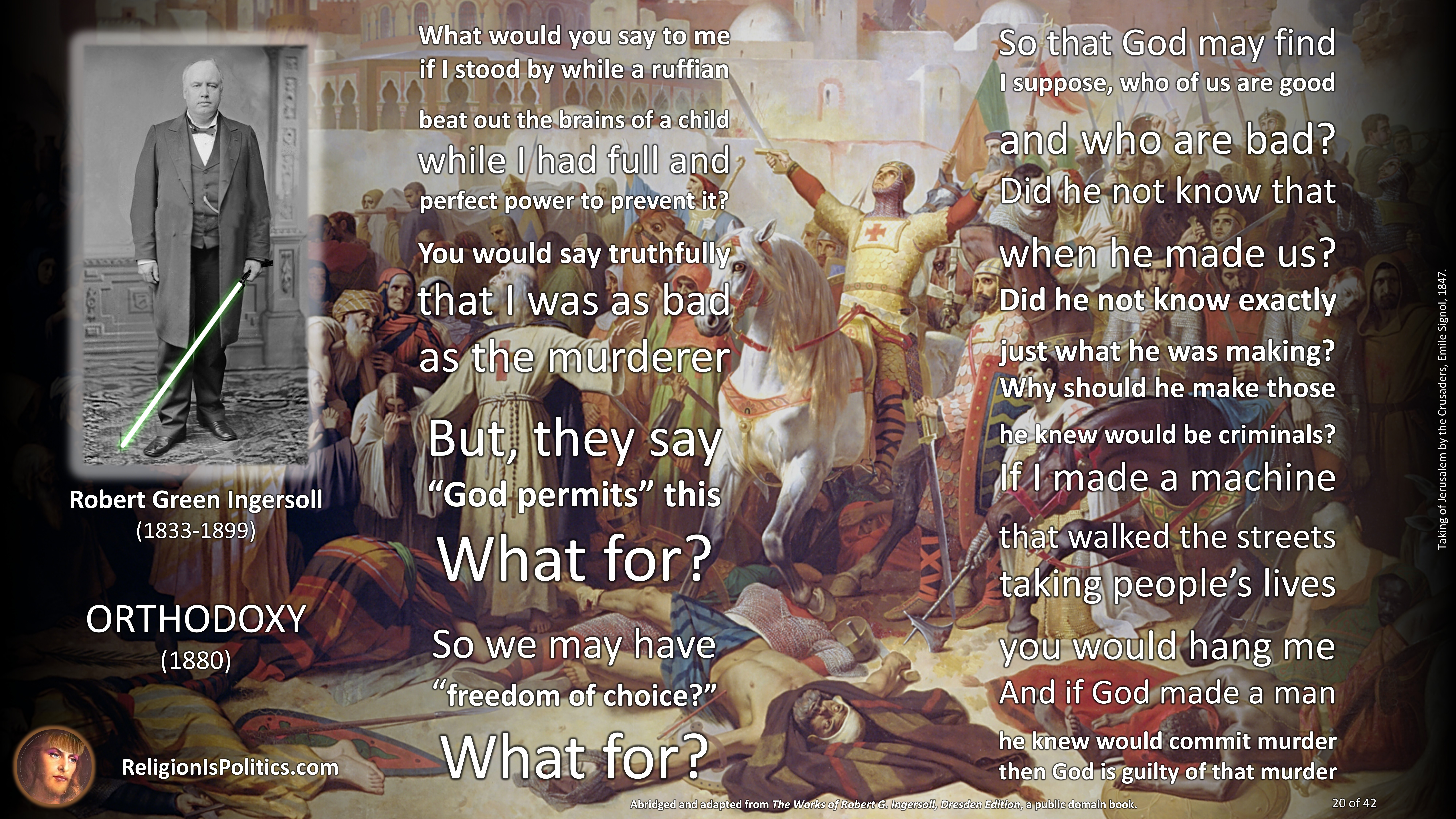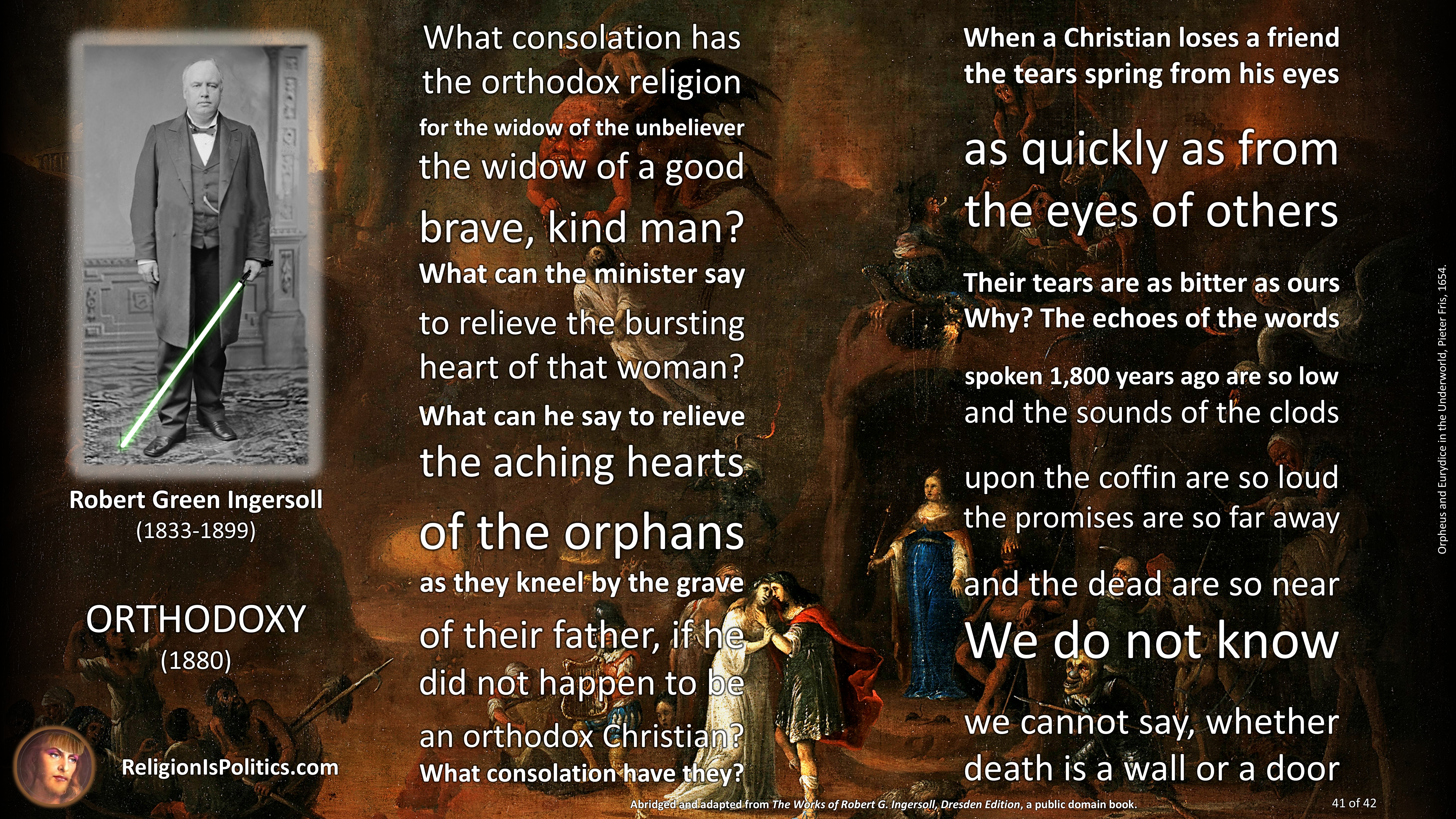 With “Orthodoxy,” Ingersoll delivered a powerful critique of “fundamental” / “orthodox” superstitions and provided a better example. I hope it may do some good in 2025.