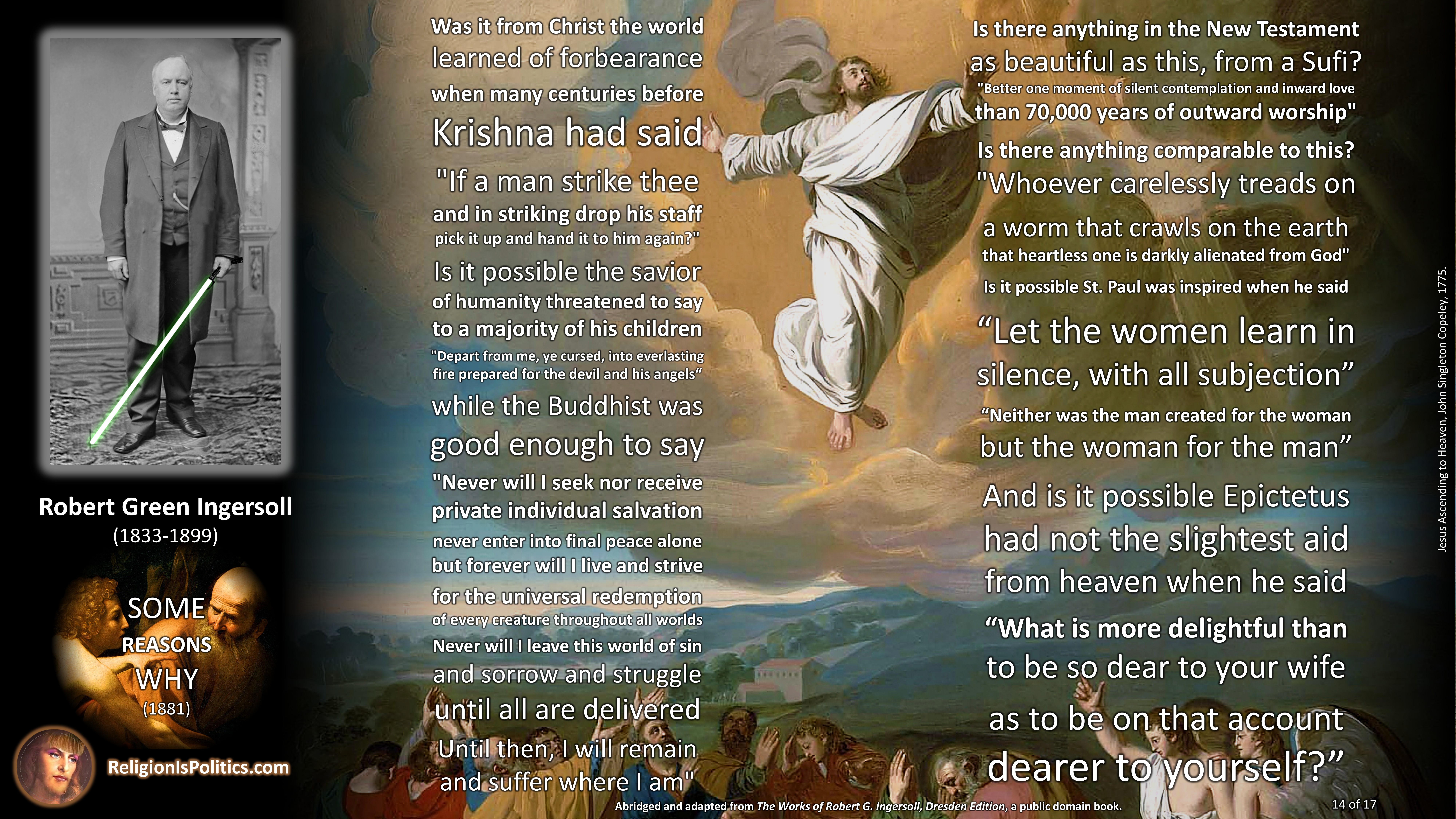 Here are some reasons why, given by Robert G. Ingersoll in 1881.