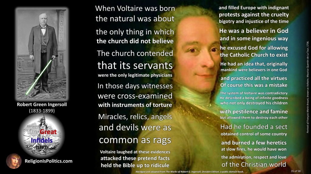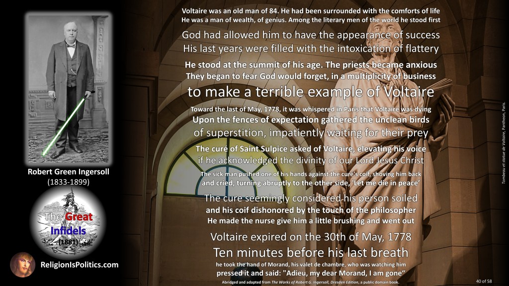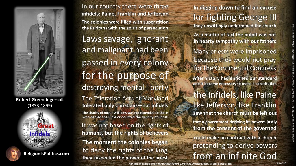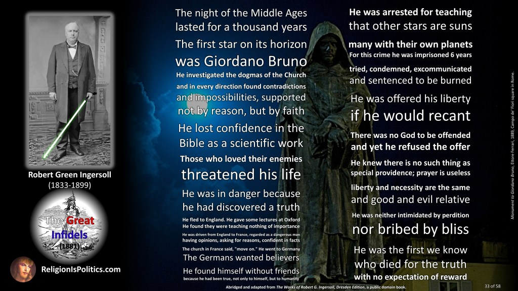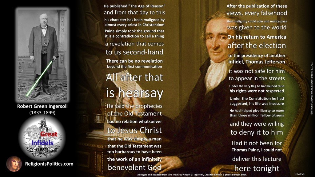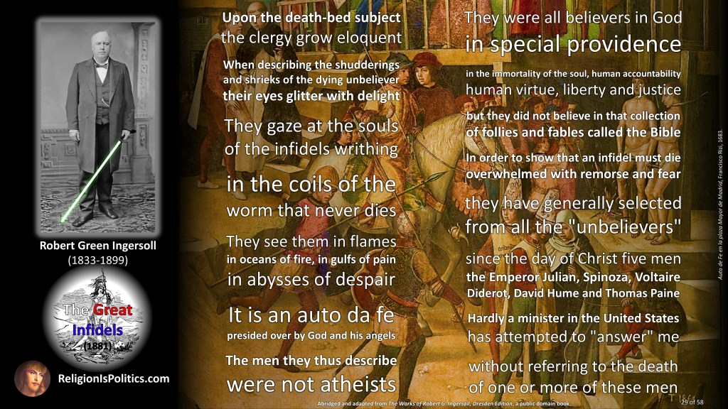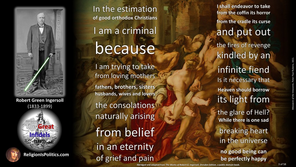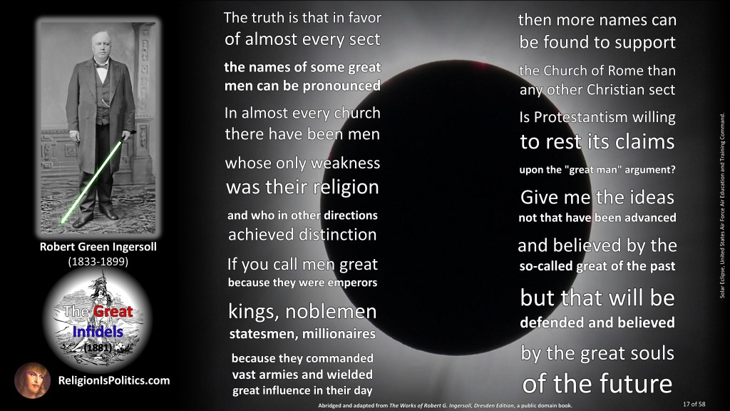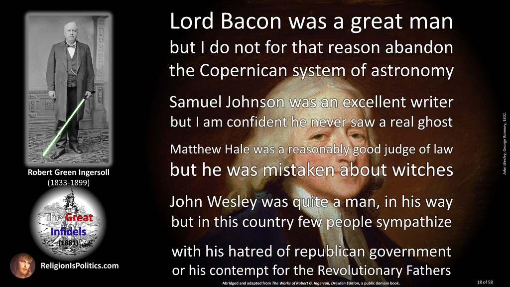 In The Great Infidels, Ingersoll did his best to set the record straight, and I bring his best to you.