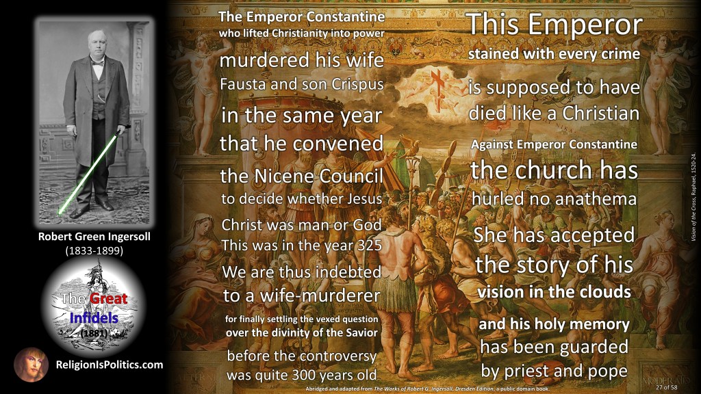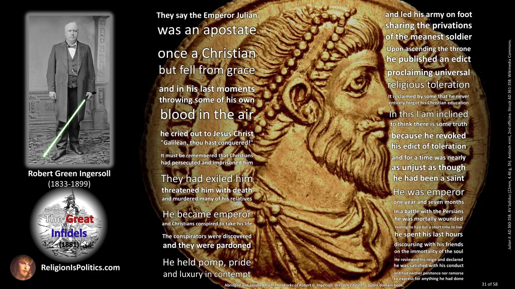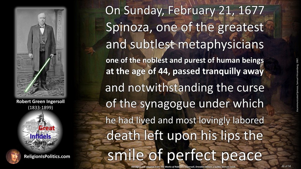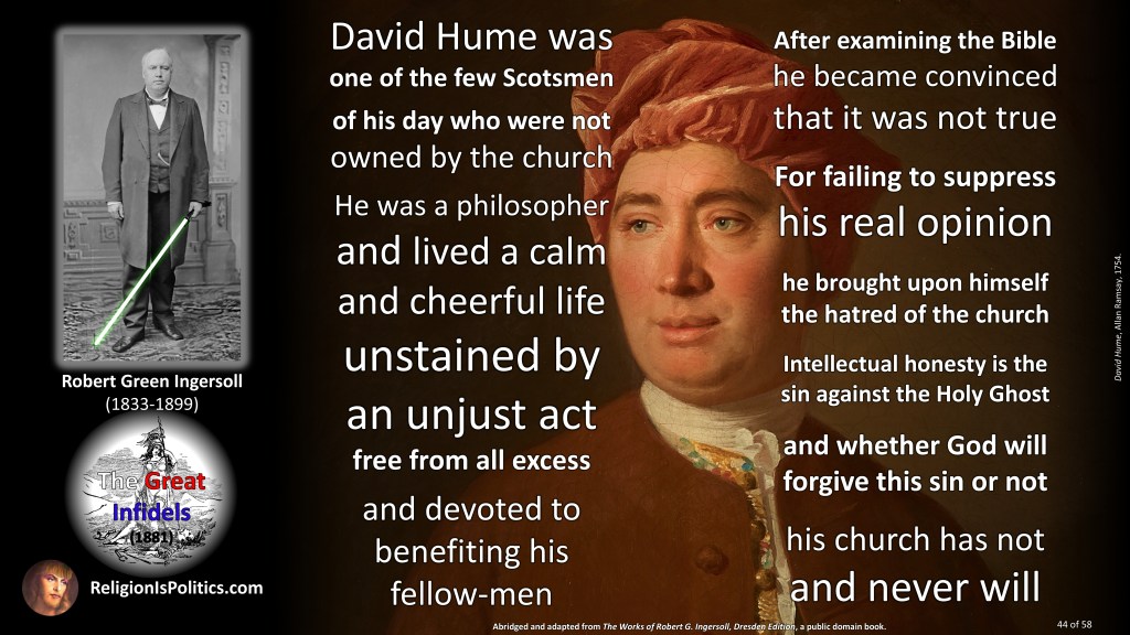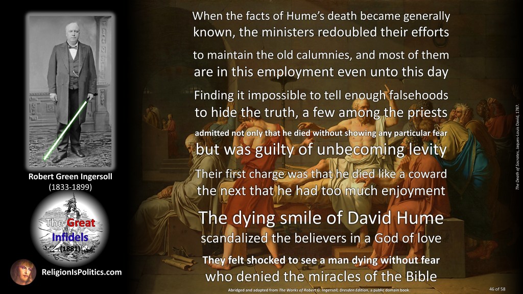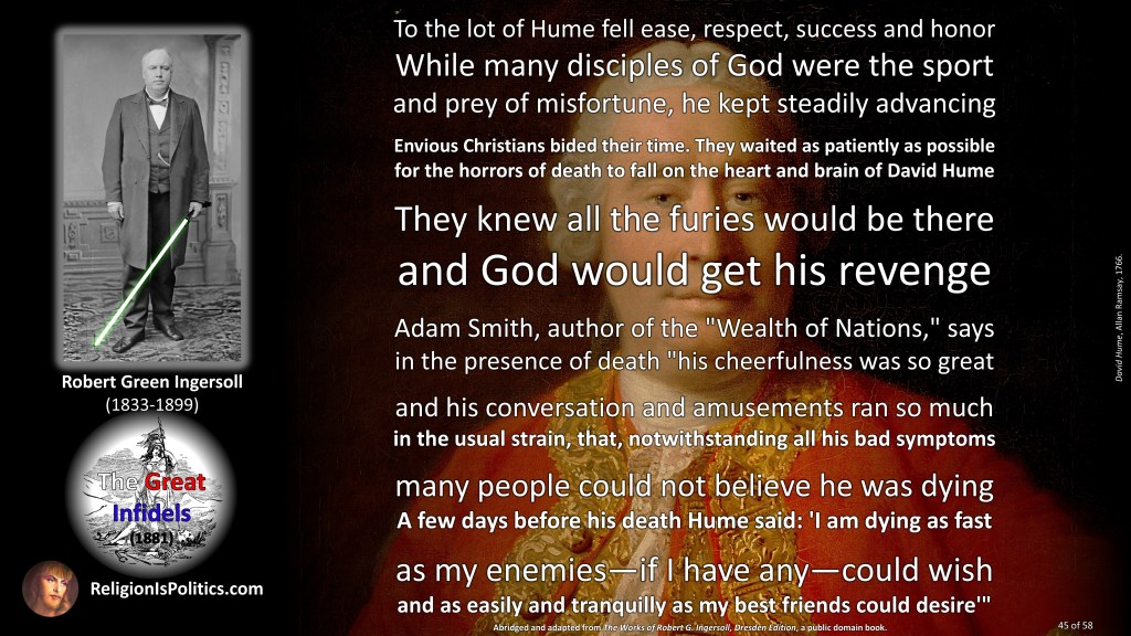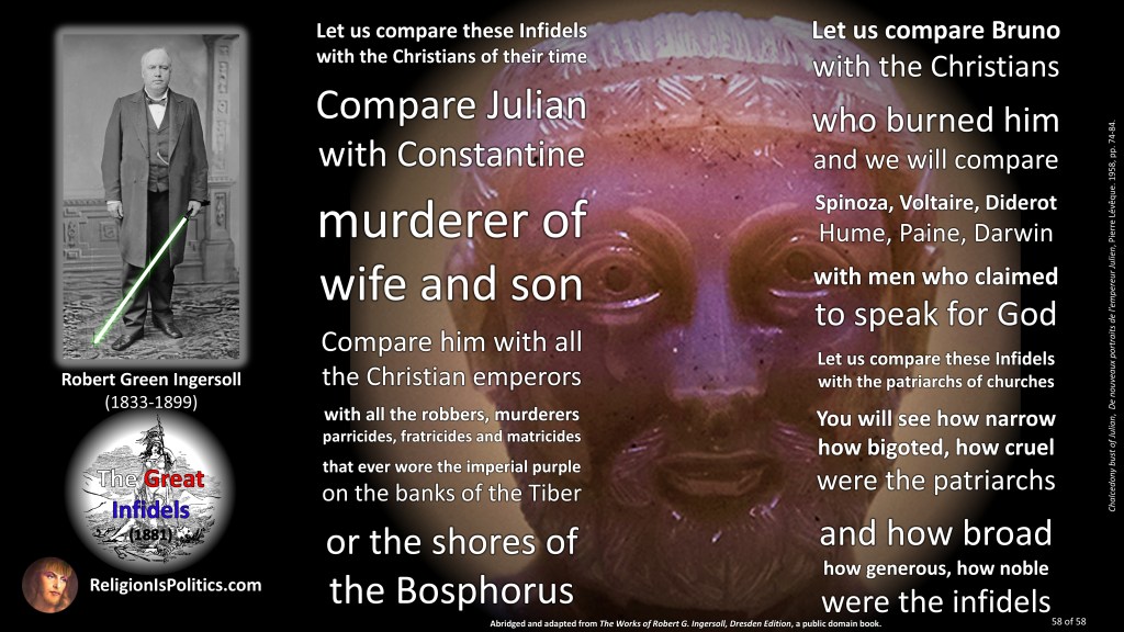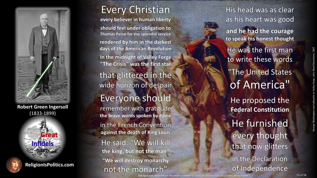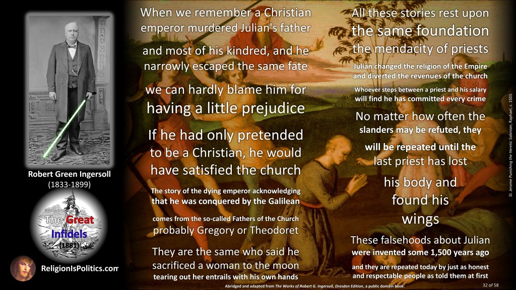 In The Great Infidels, Ingersoll did his best to set the record straight, and I bring his best to you.