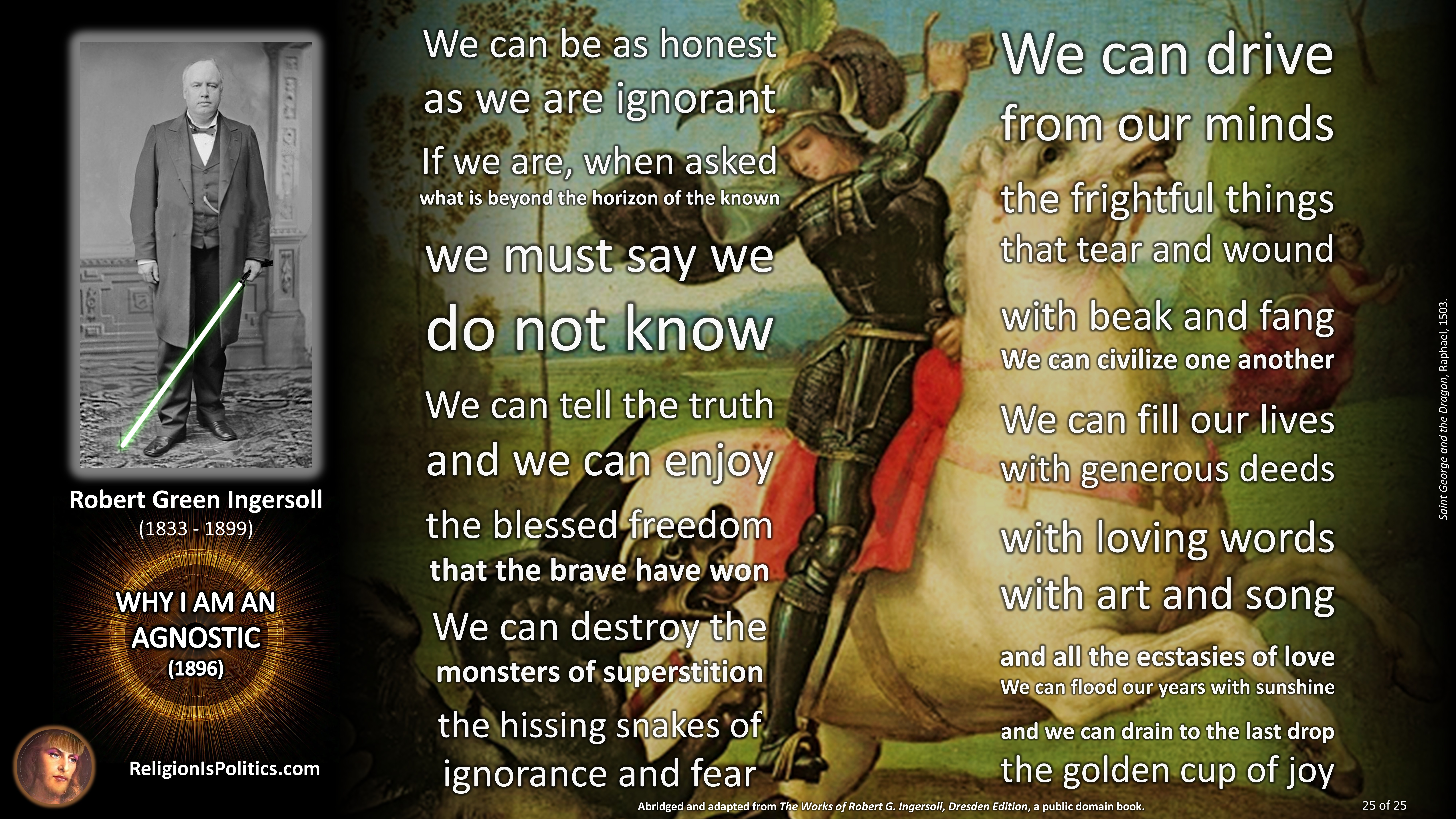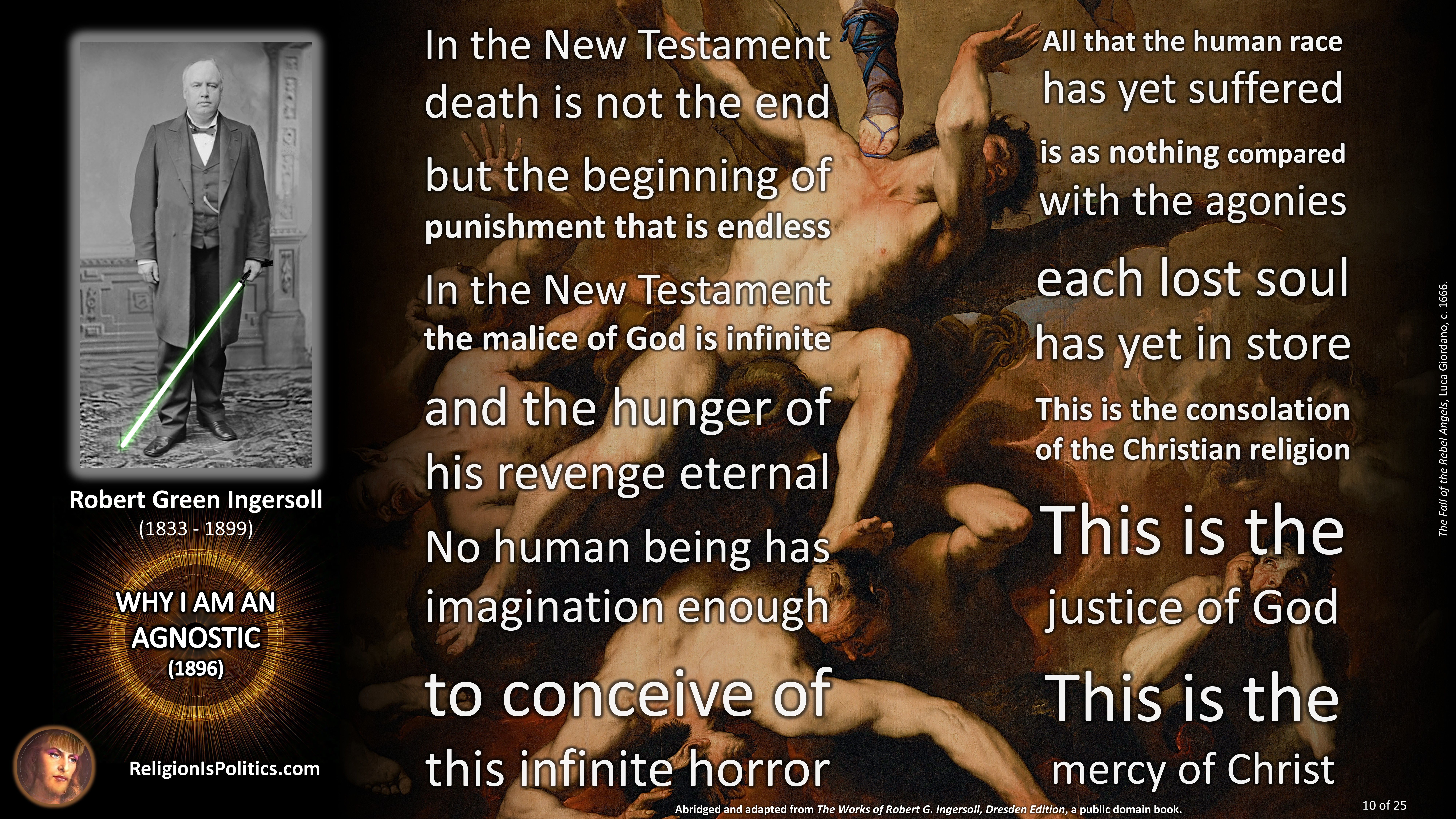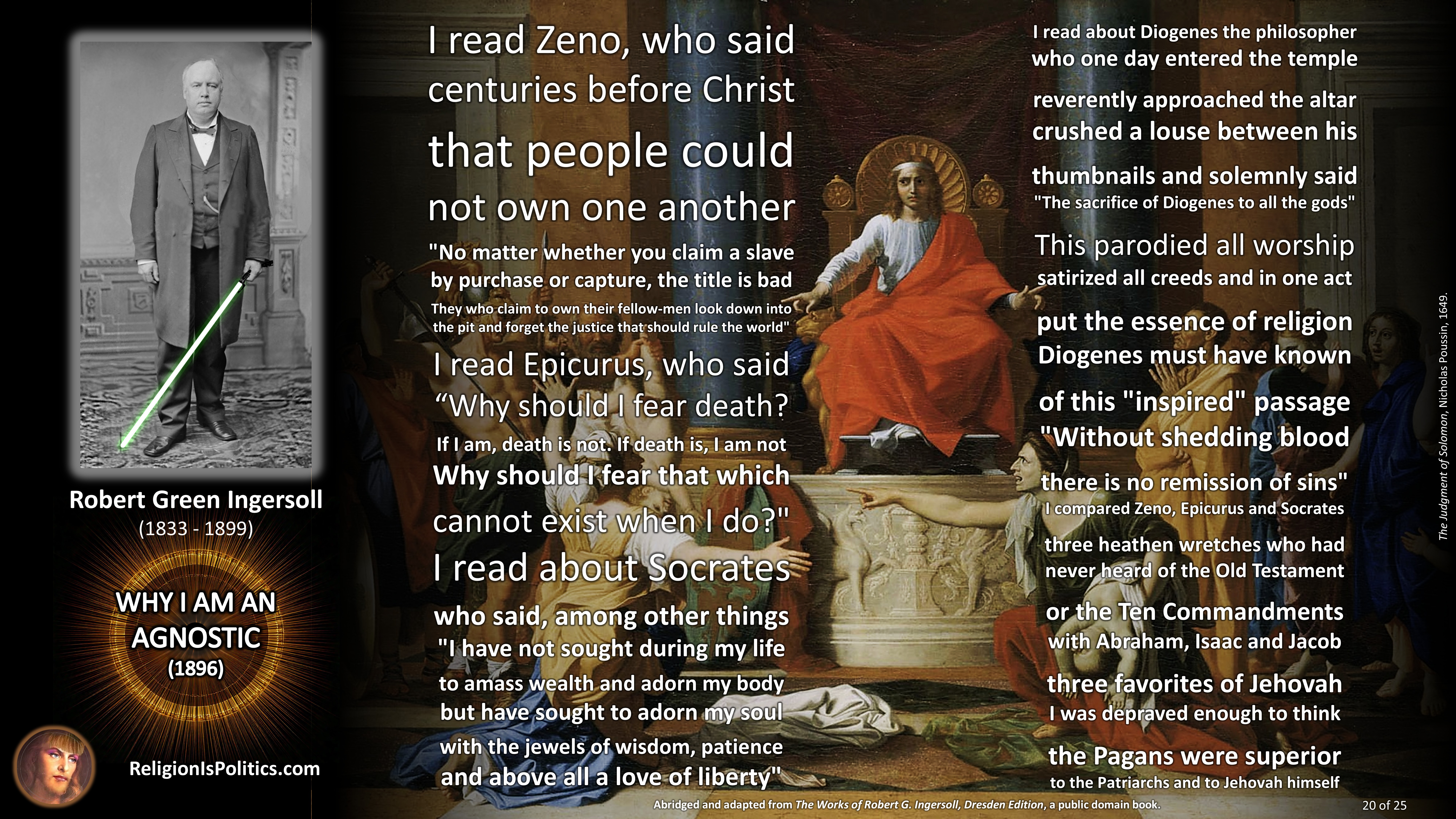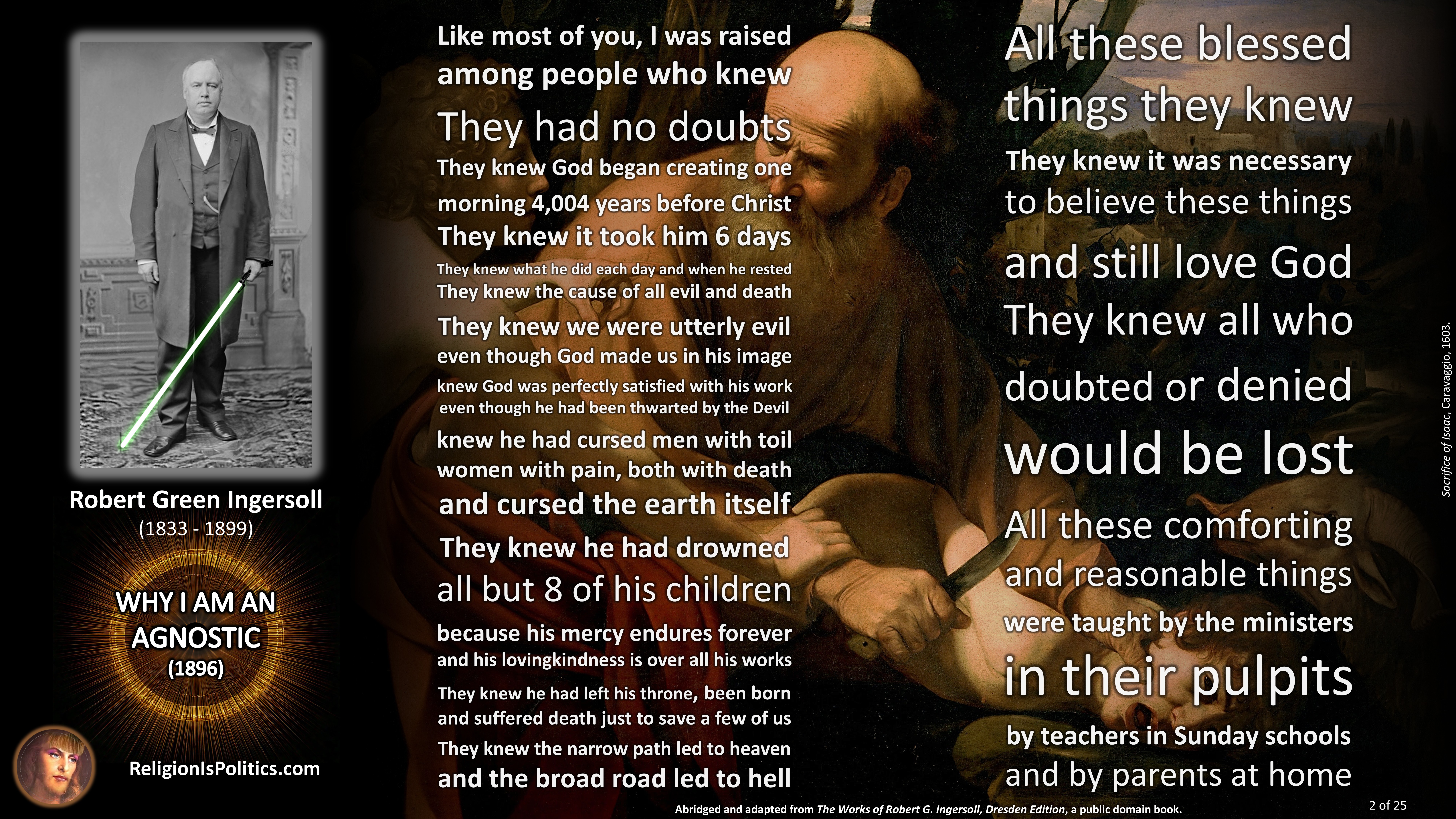 Ingersoll delivered this speech in 1896, near the end of his career. It was a powerful and personal lecture that reflected on a lifetime spent fighting theocracy.