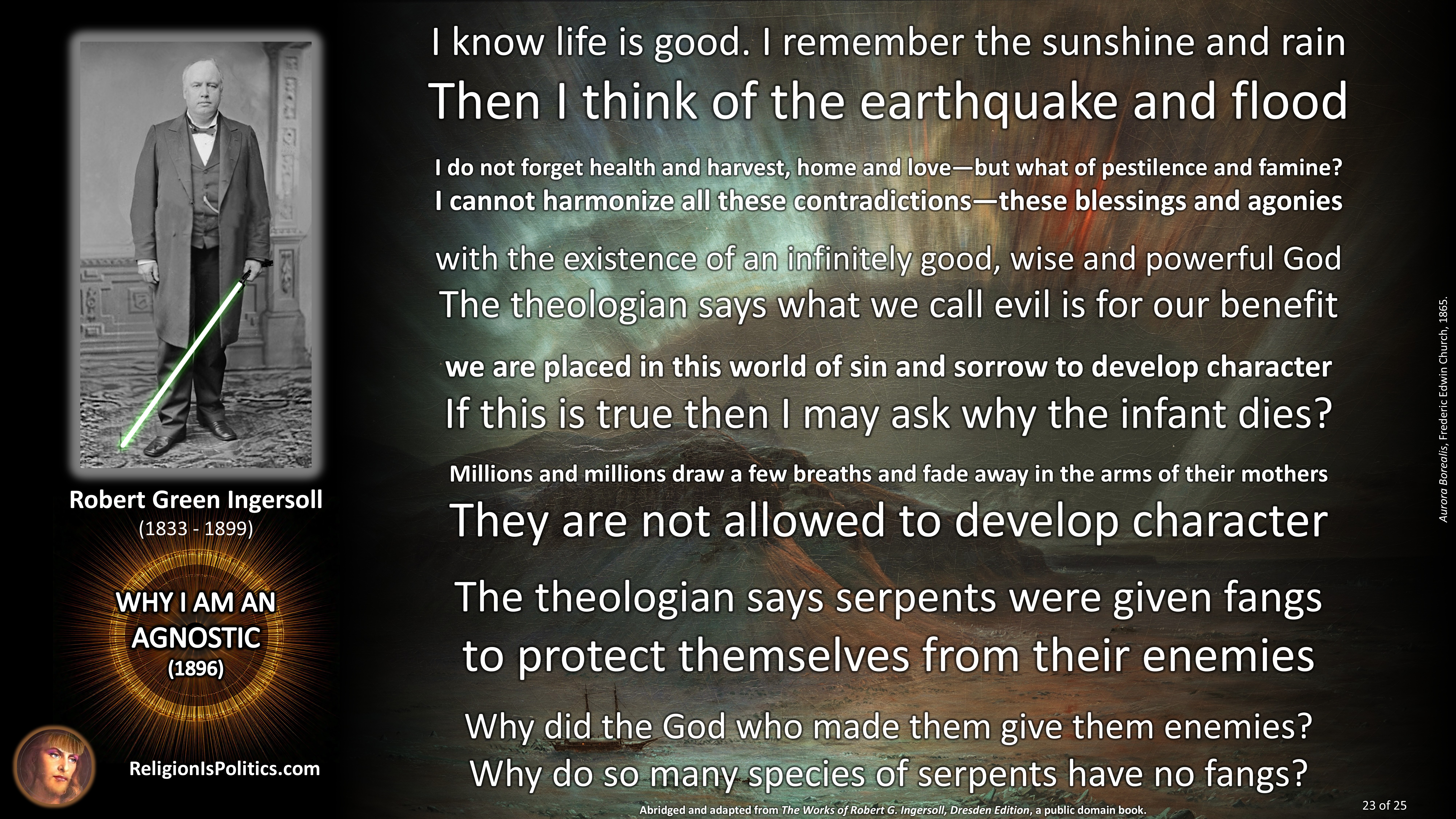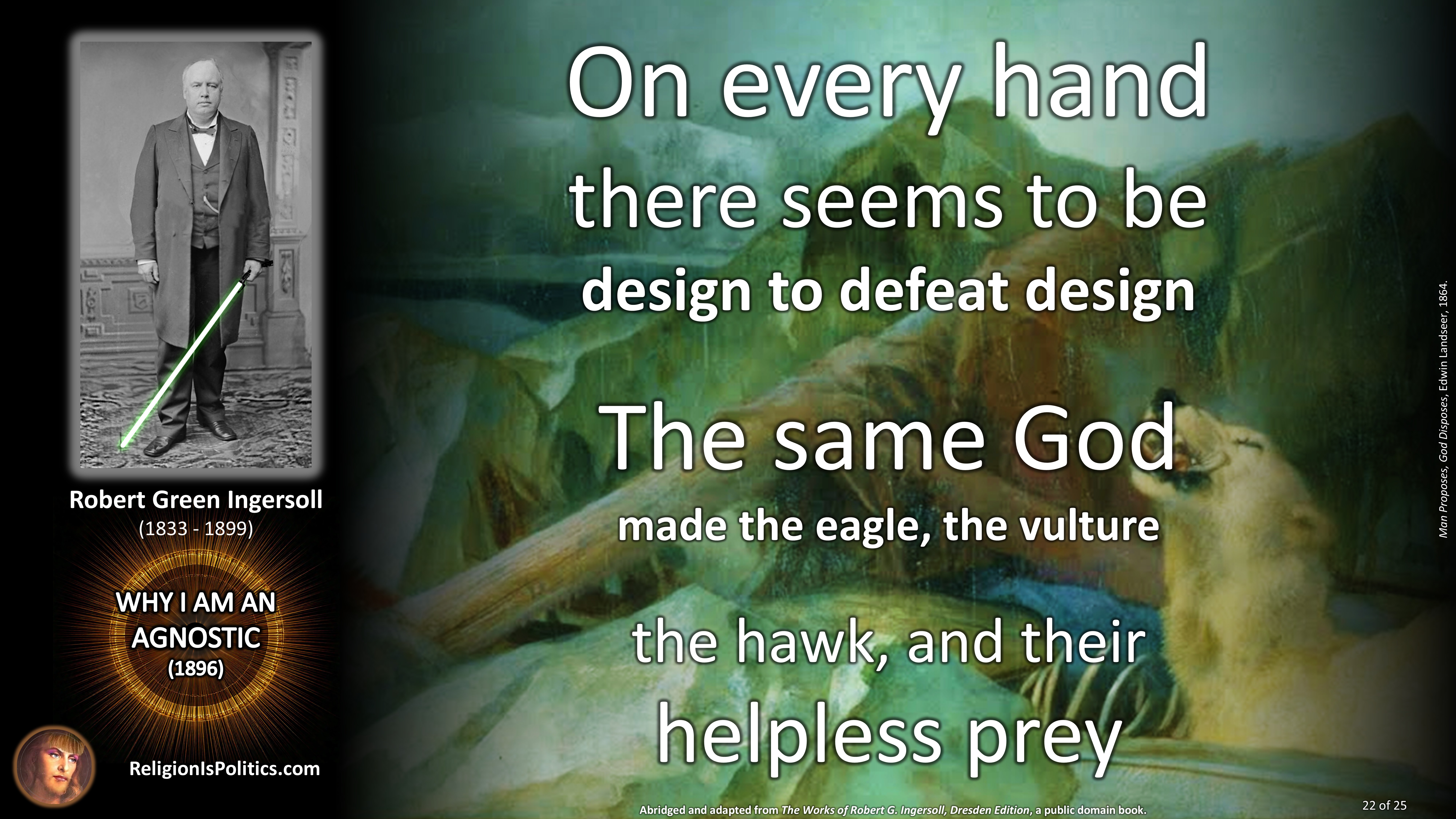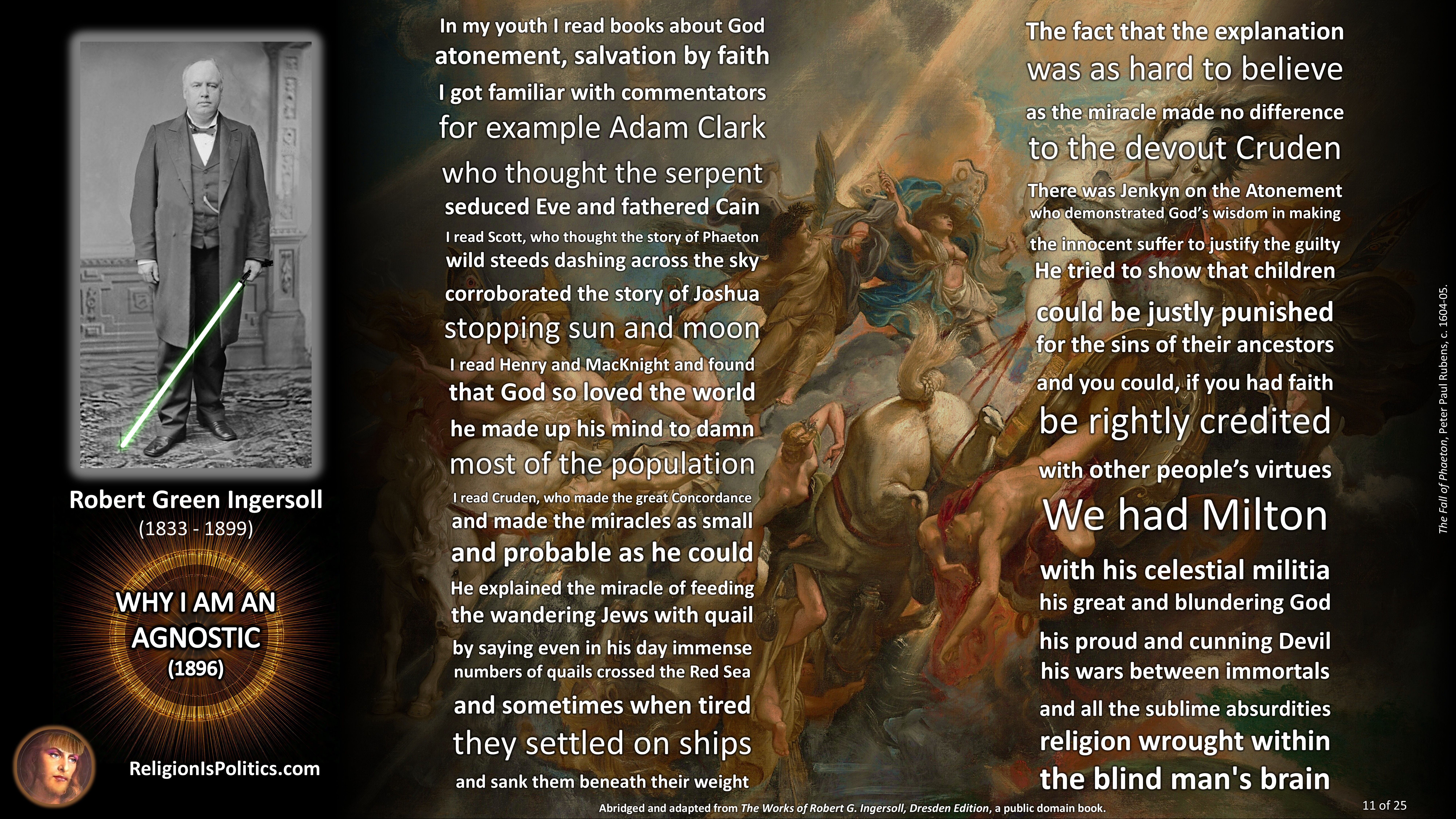 Ingersoll delivered this speech in 1896, near the end of his career. It was a powerful and personal lecture that reflected on a lifetime spent fighting theocracy.