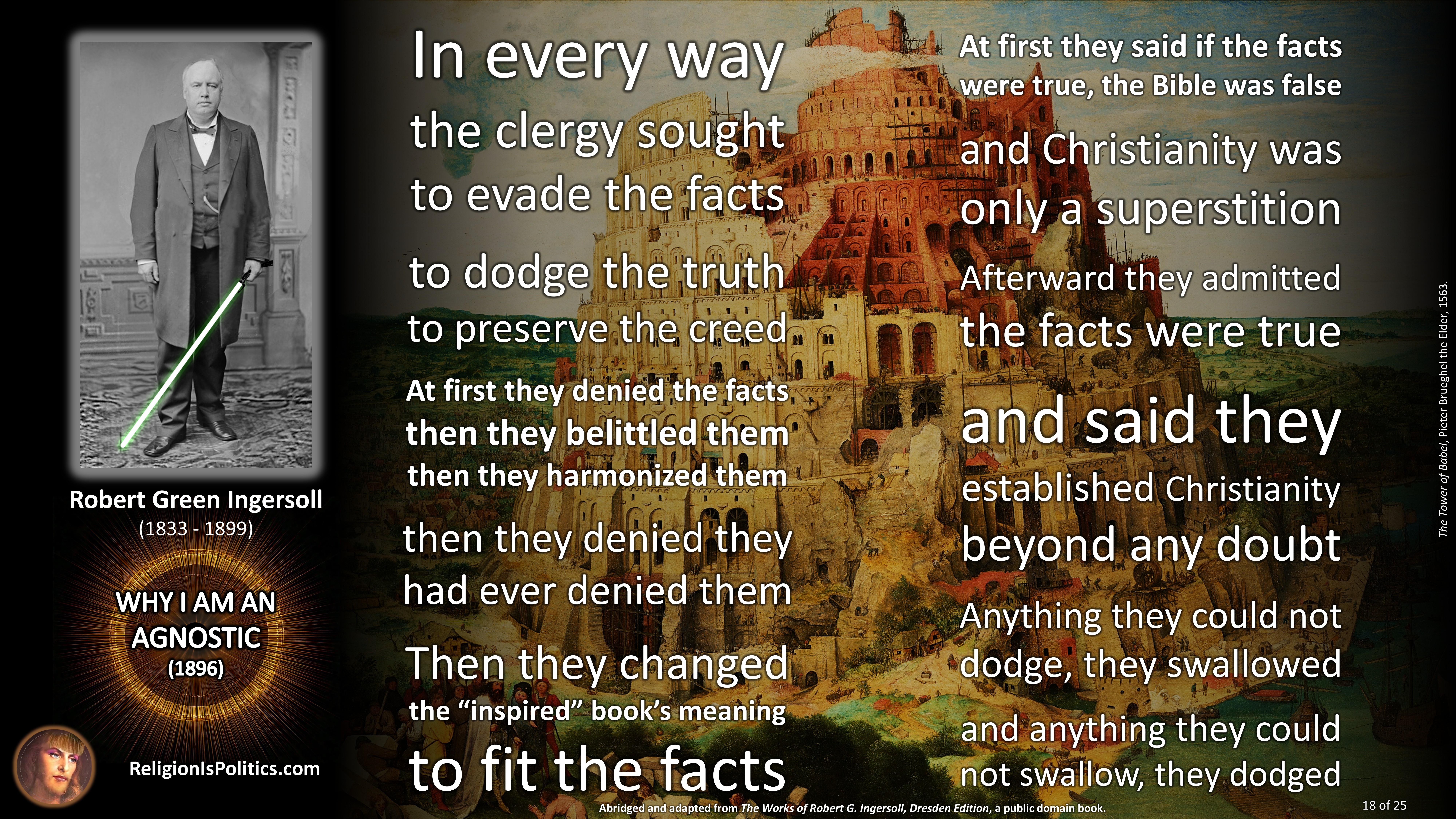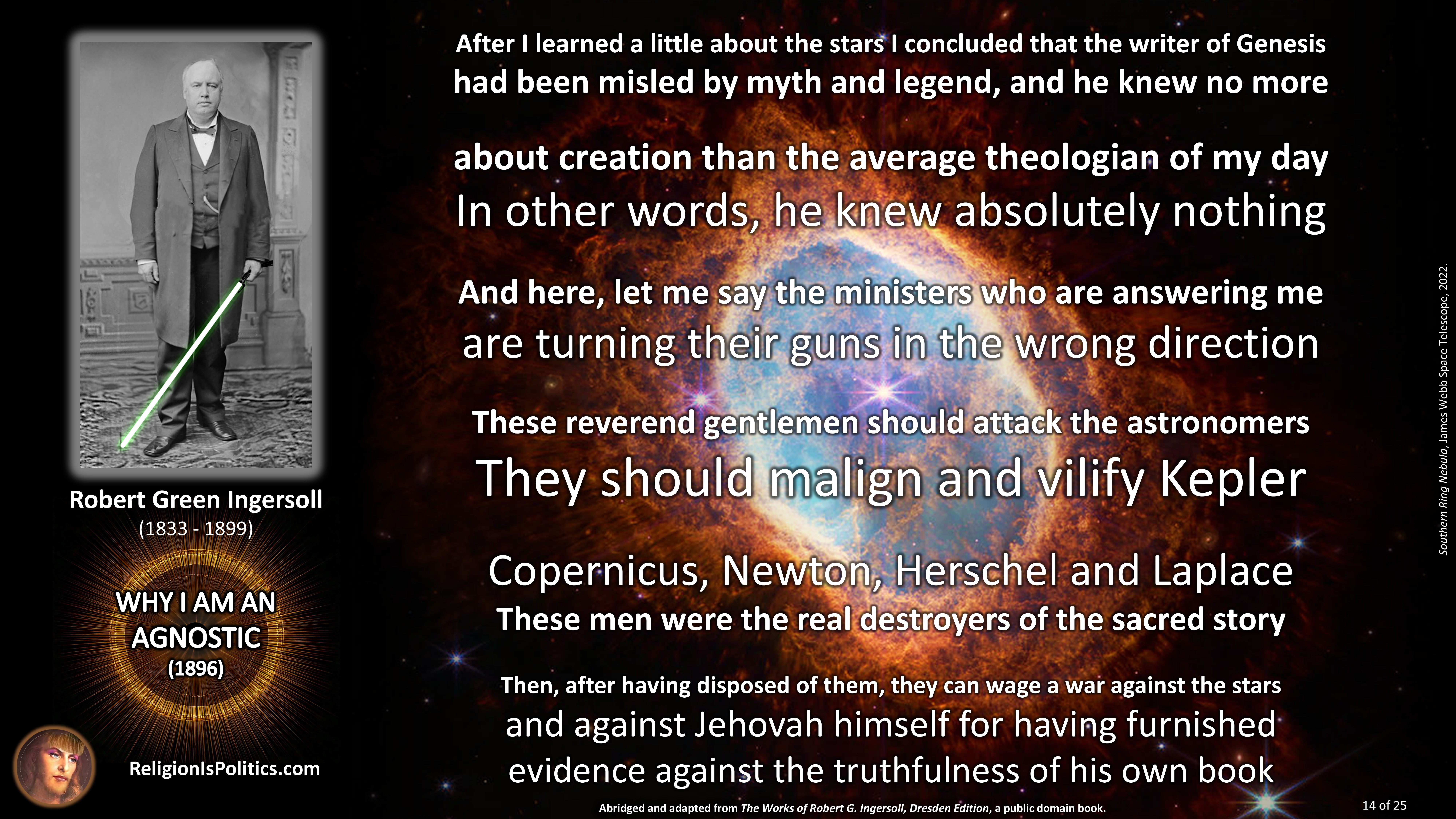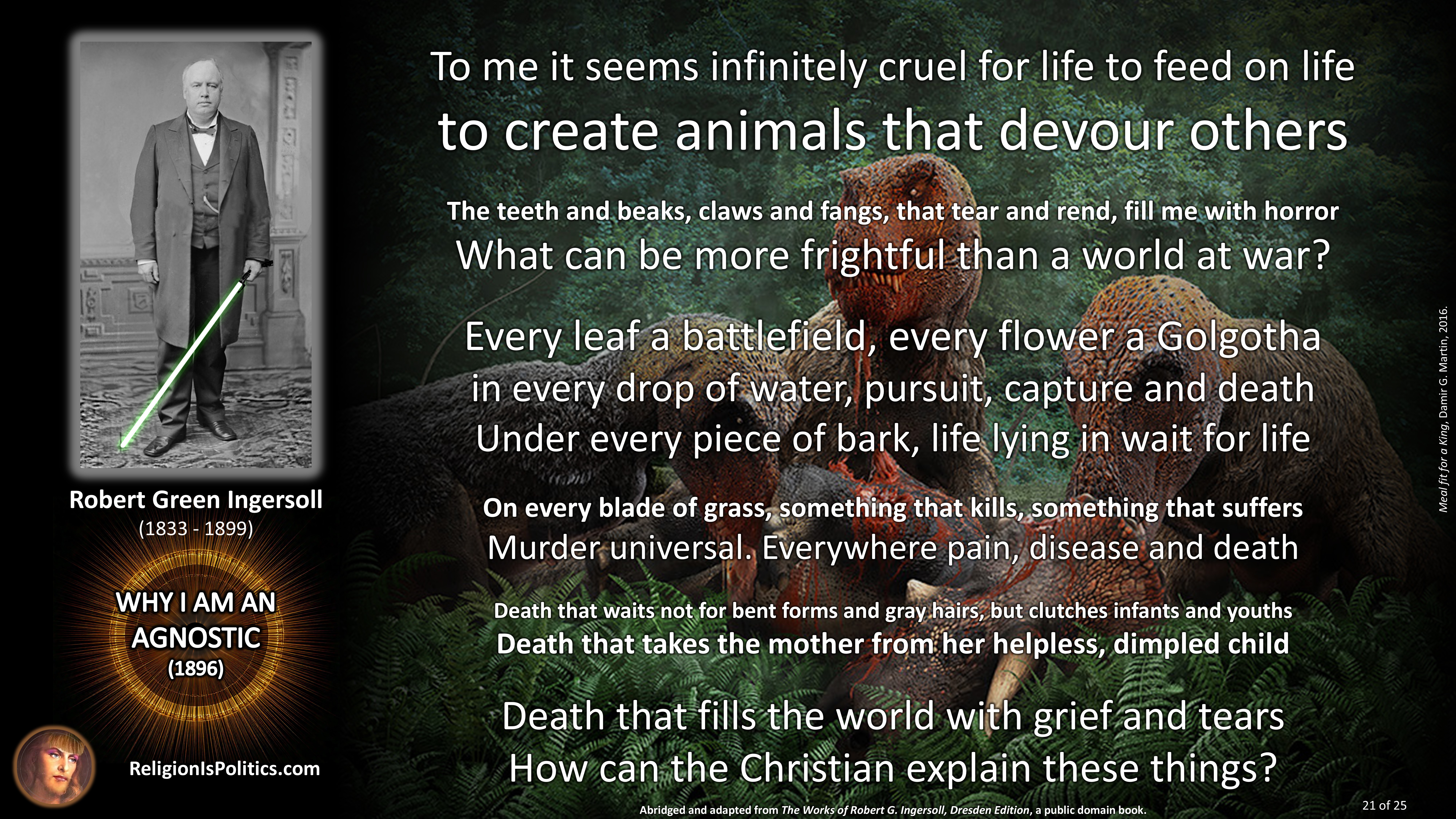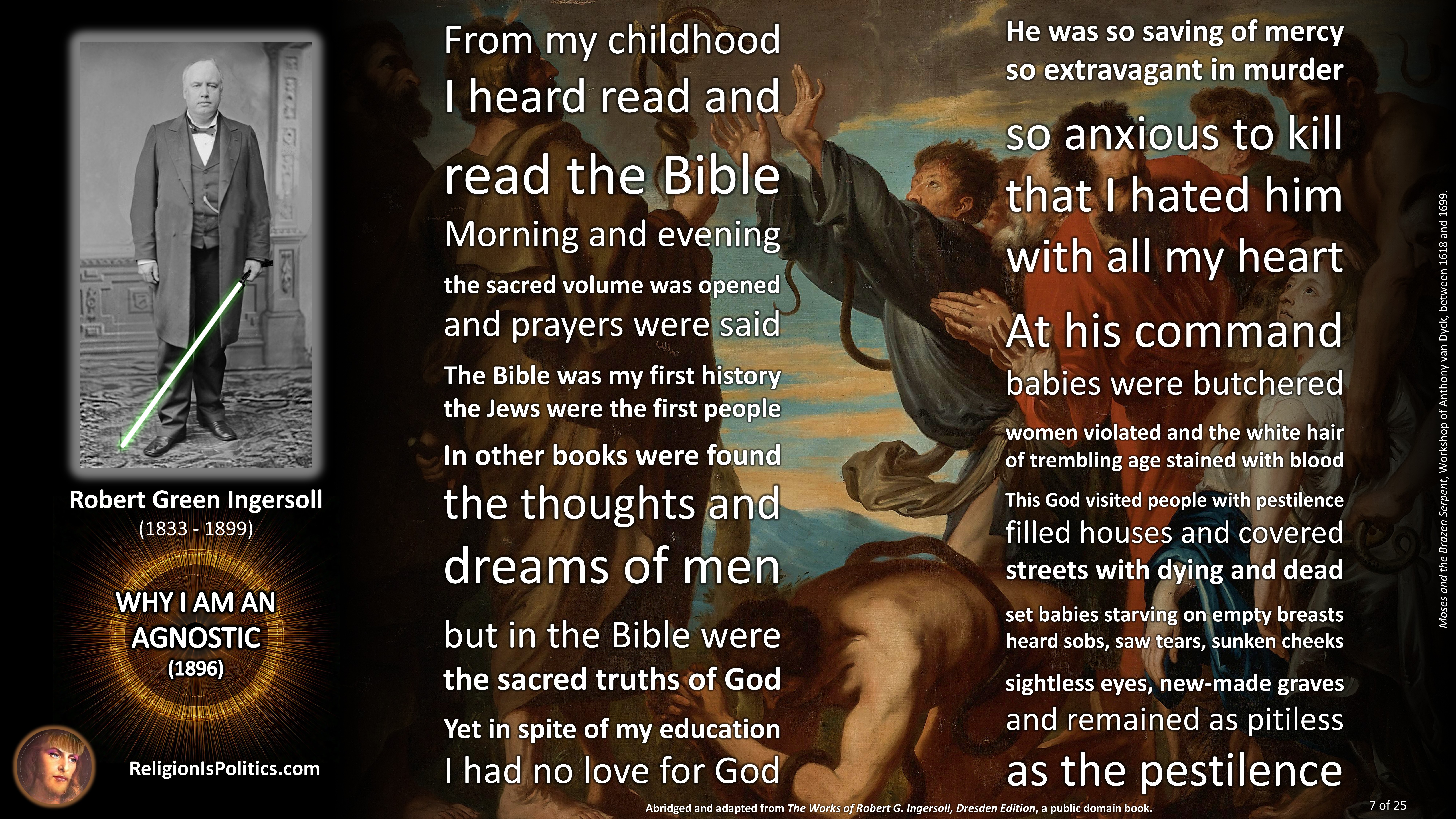 Ingersoll delivered this speech in 1896, near the end of his career. It was a powerful and personal lecture that reflected on a lifetime spent fighting theocracy.